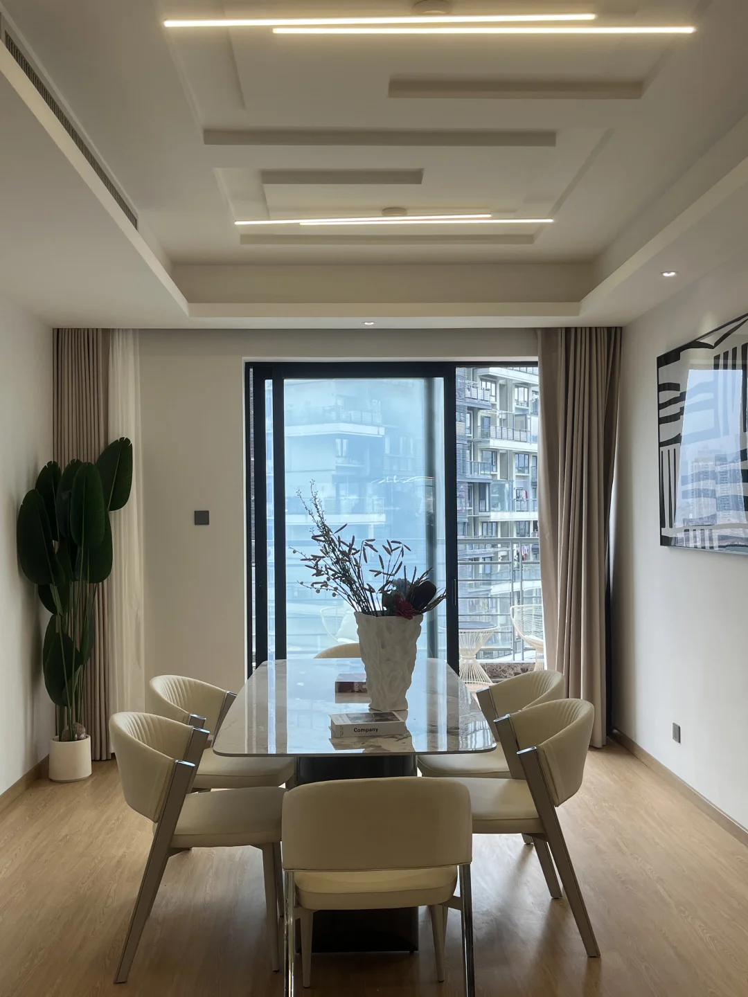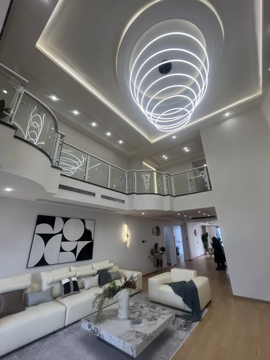 纯水岸7期,复式大平层,楼上楼下都有大阳台! 业主刚刚装修好,很漂亮的。 可以拎包入住,家私家电全部配齐全的。 客厅和餐厅一体化的,南北都有阳台,餐厅这边大阳台看华侨城高尔夫,一楼主卧出阳台,大阳台上喝咖啡看园林和华侨城城市景。 客厅还有6米的挑空,在吊灯承托下看起来很舒服,2楼还有三个套房,一家人可以安排明明白白。 月租金4.6万,中间楼层,有专梯入户,有兴趣可以滴滴!
