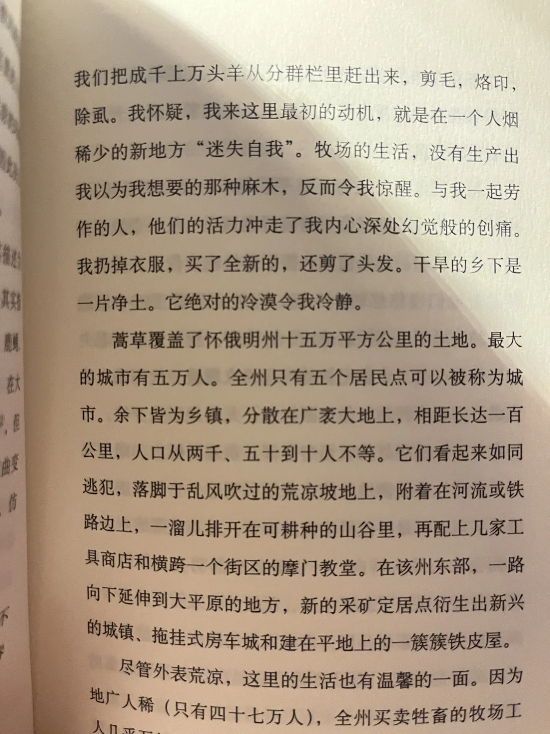 “在此地,好好生活,无论是在情感上还是在物质上,都是一门需要妥协讲究的艺术。至少从传统上说,牧区生活是与物质生活背道而驰的,它代表人与动物协作的微小成就,以及更为简单的乐趣——比如,晚上听听收收音机,或是辨认星座。我所知道的坚韧,不是一种殉道式的顽强,不是一种愚蠢的英雄主义,而是一种适应的艺术。我想:坚韧就是脆弱,温柔才是真正的凶猛。”