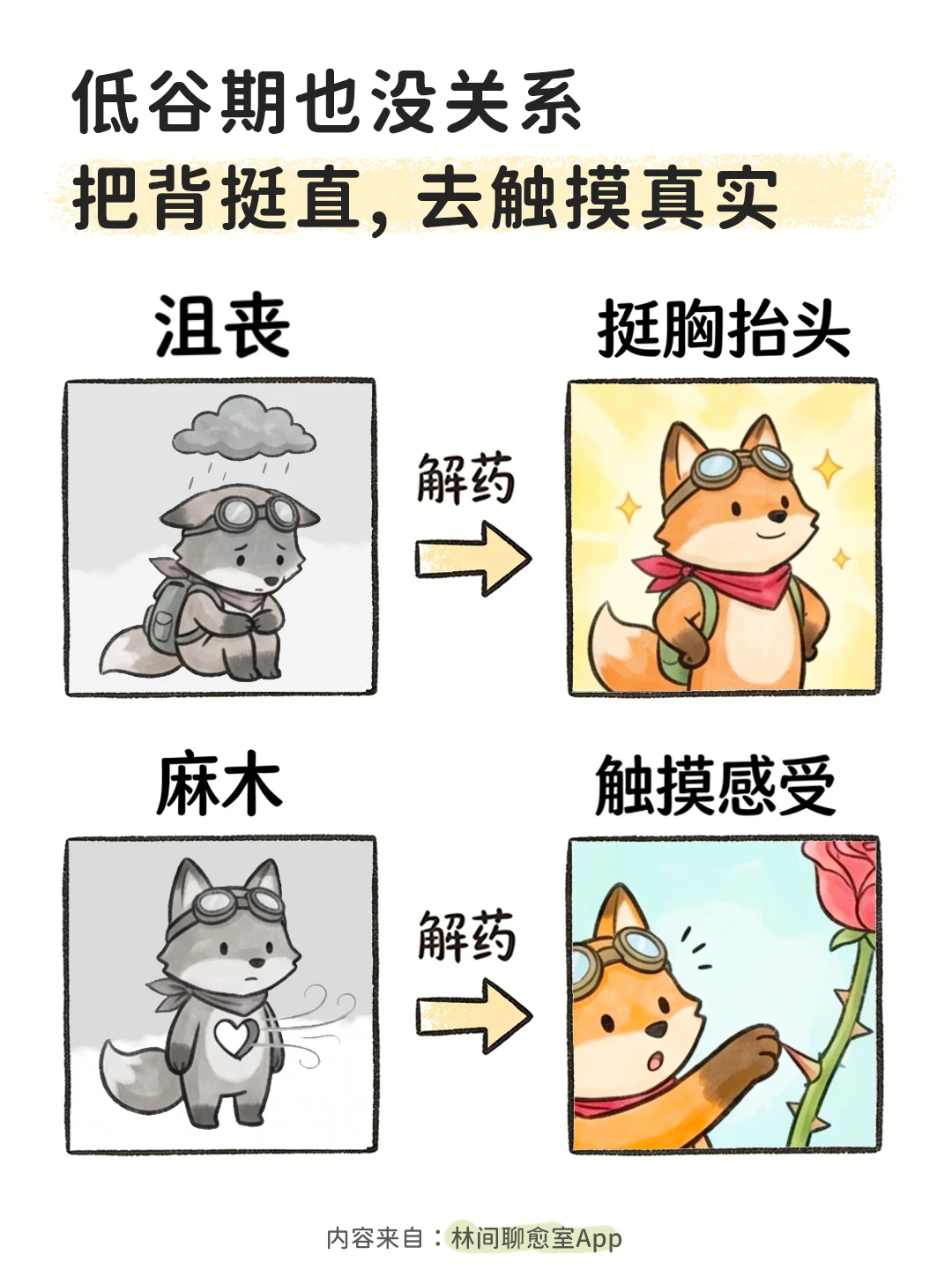 🔋 沮丧 & 麻木→ 挺胸抬头 + 触摸实物