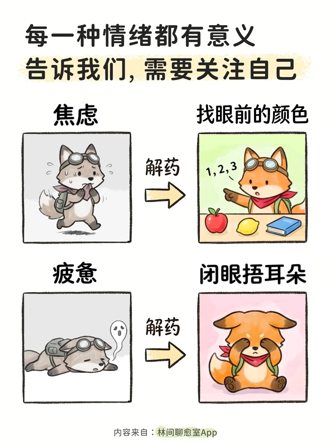 👀 焦虑 & 疲惫→ 找颜色 + 闭眼捂耳