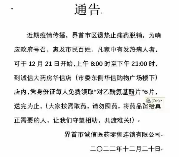 药店里的药几乎能买到退烧药的可能性比较小,但是也有一些药店比较有作为,凭借身份证就可以免费取药。一般发烧,我们这边吃的较多的是扑热息痛(对乙酰氨基酚),买不到布洛芬,就只能吃一些其他的药物进行代替,阳了不可怕,可怕的是阳了之后没有及时的治疗。现在阳了也和大号的流感没啥区别,在家吃点药隔离几天也能好。