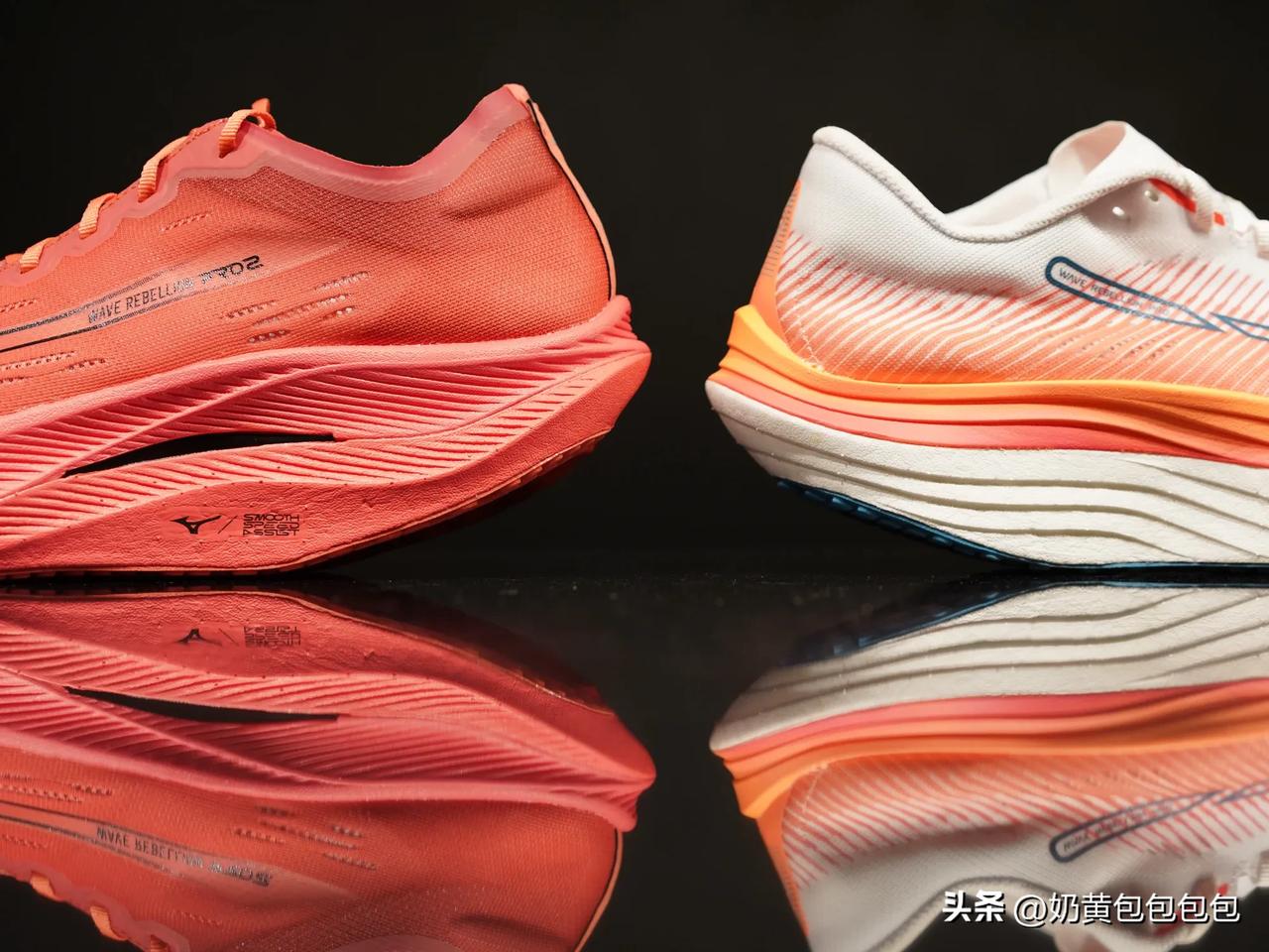 相比第一代,Wave Rebellion Pro 2 乍一看好像设计的更保守,取消了中底内侧的镂空,泡棉外面的结构褶皱也变得细密。实际上脚,感觉中底更高了一些,触地那部分有更强烈的凸起感,触地点相比第一代更加靠前,虽然中间接触地面的长度看起来更长,不过前掌虽然做薄了点、可弧度更大,总的来说又激进了点。