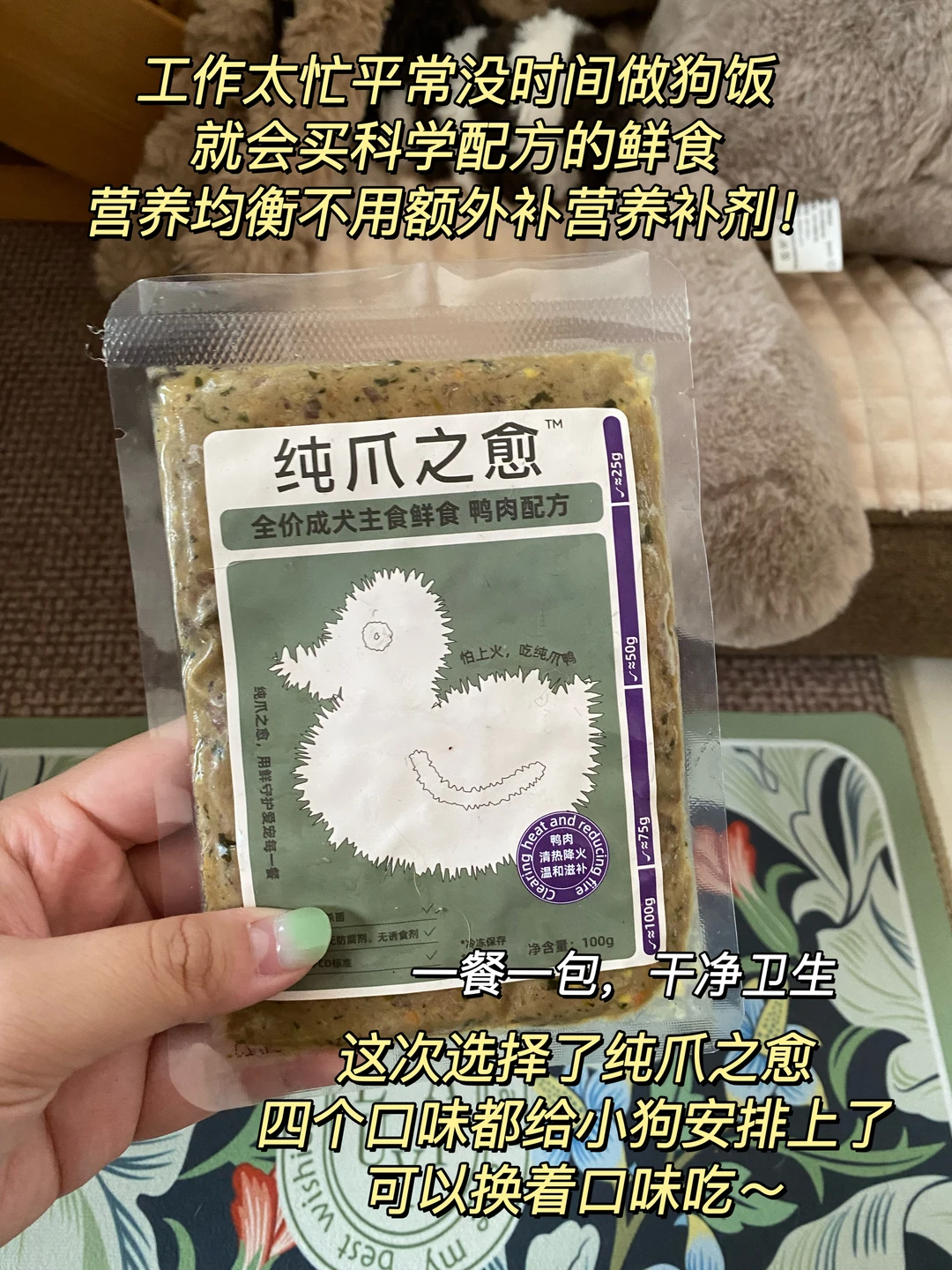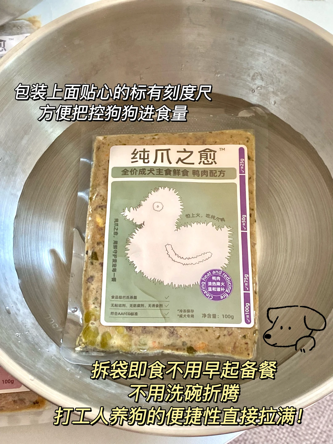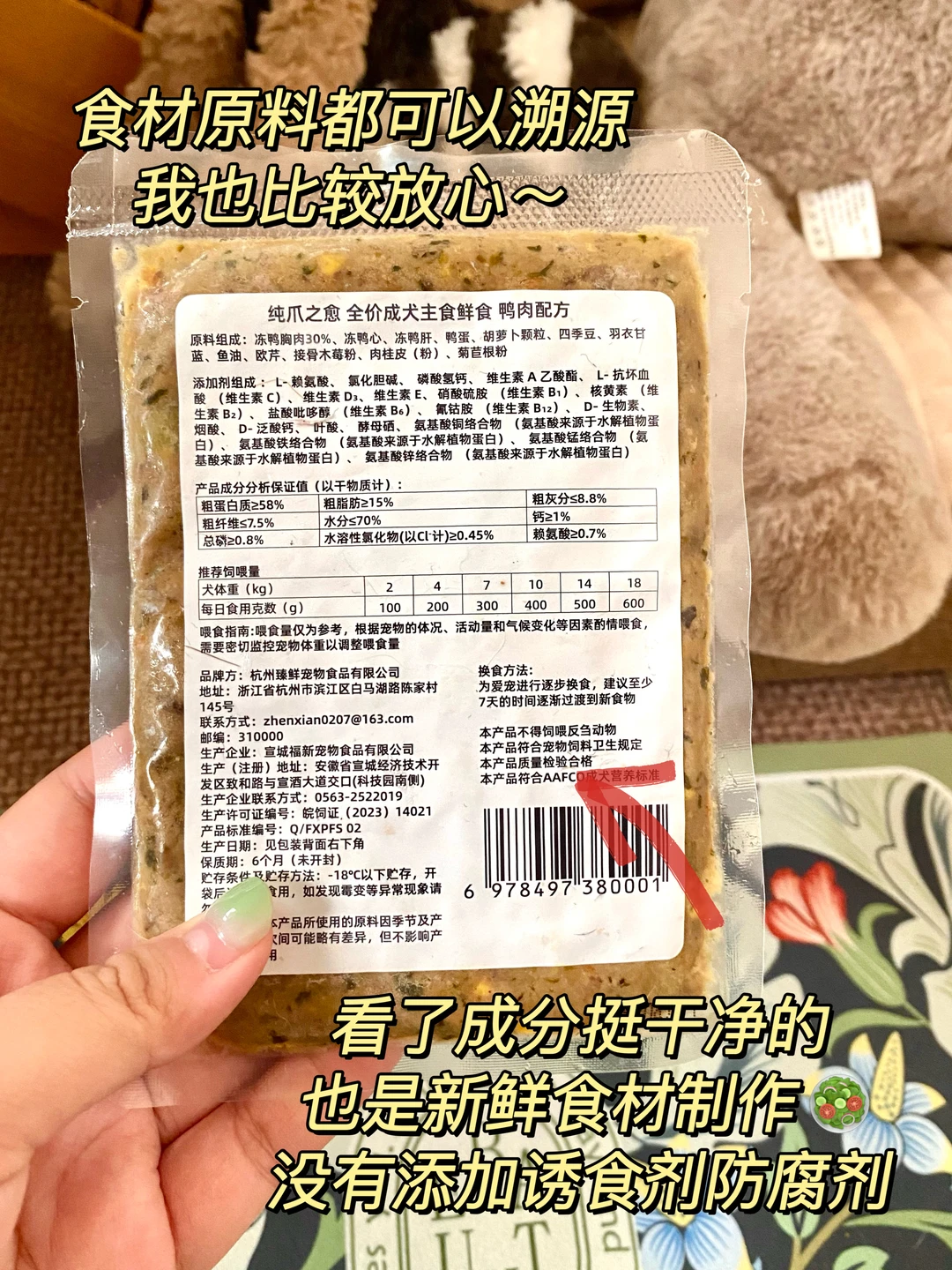 原料表我也放在图片里了,看了成分挺干净的,也是新鲜食材制作🥗,低温蒸煮锁鲜还没有添加诱食剂防腐剂!而且鲜食也是全价的,小狗需要的营养都有👍打开就是新鲜肉香,肉粒蔬菜搭配超用心,鲜食质地干爽不油腻,拌狗粮或直接喂都超🉑~早八赶时间3分钟搞定一餐,不用早起备餐、不用洗碗折腾,打工人养狗的便捷性直接拉满✌!