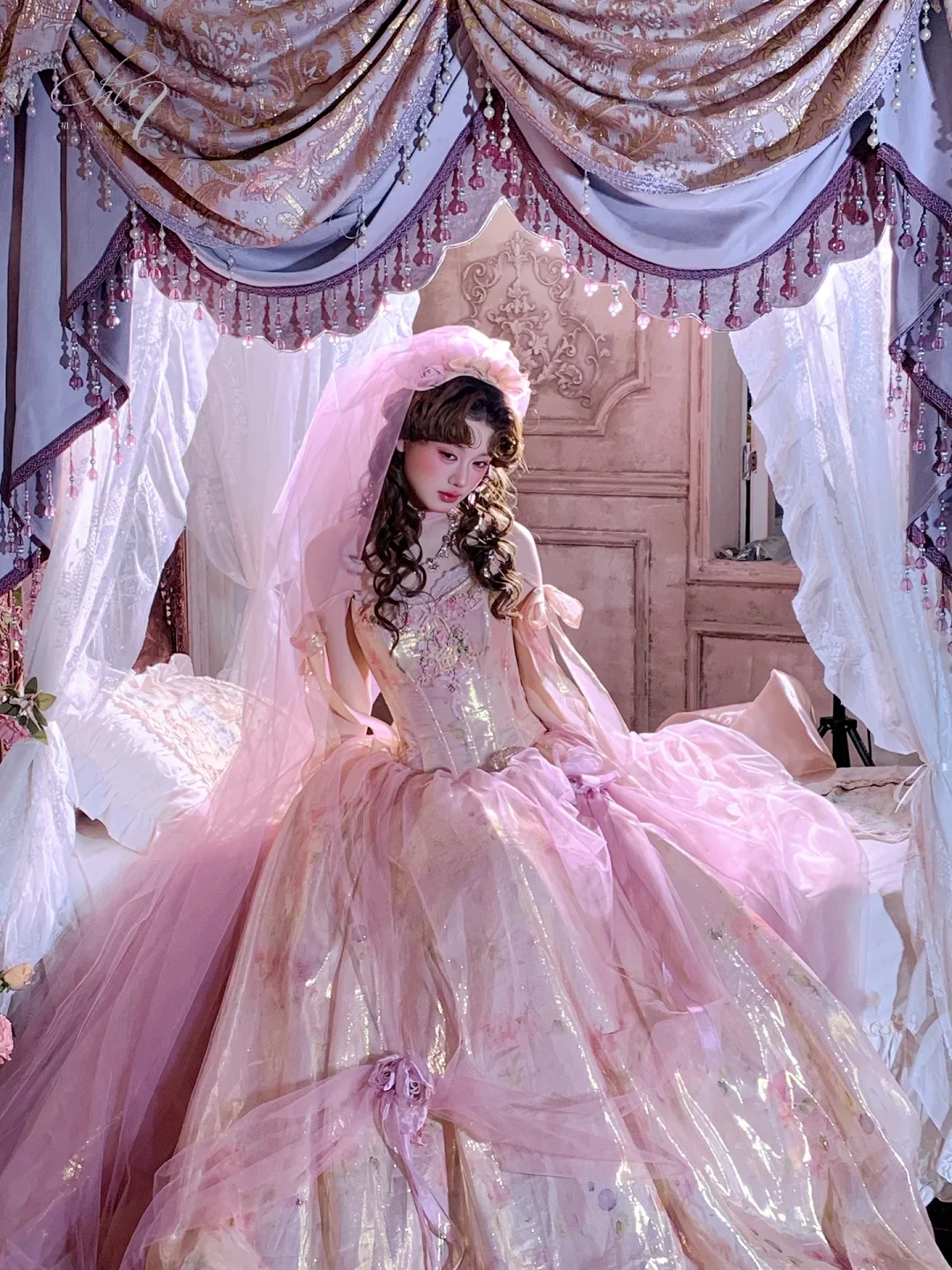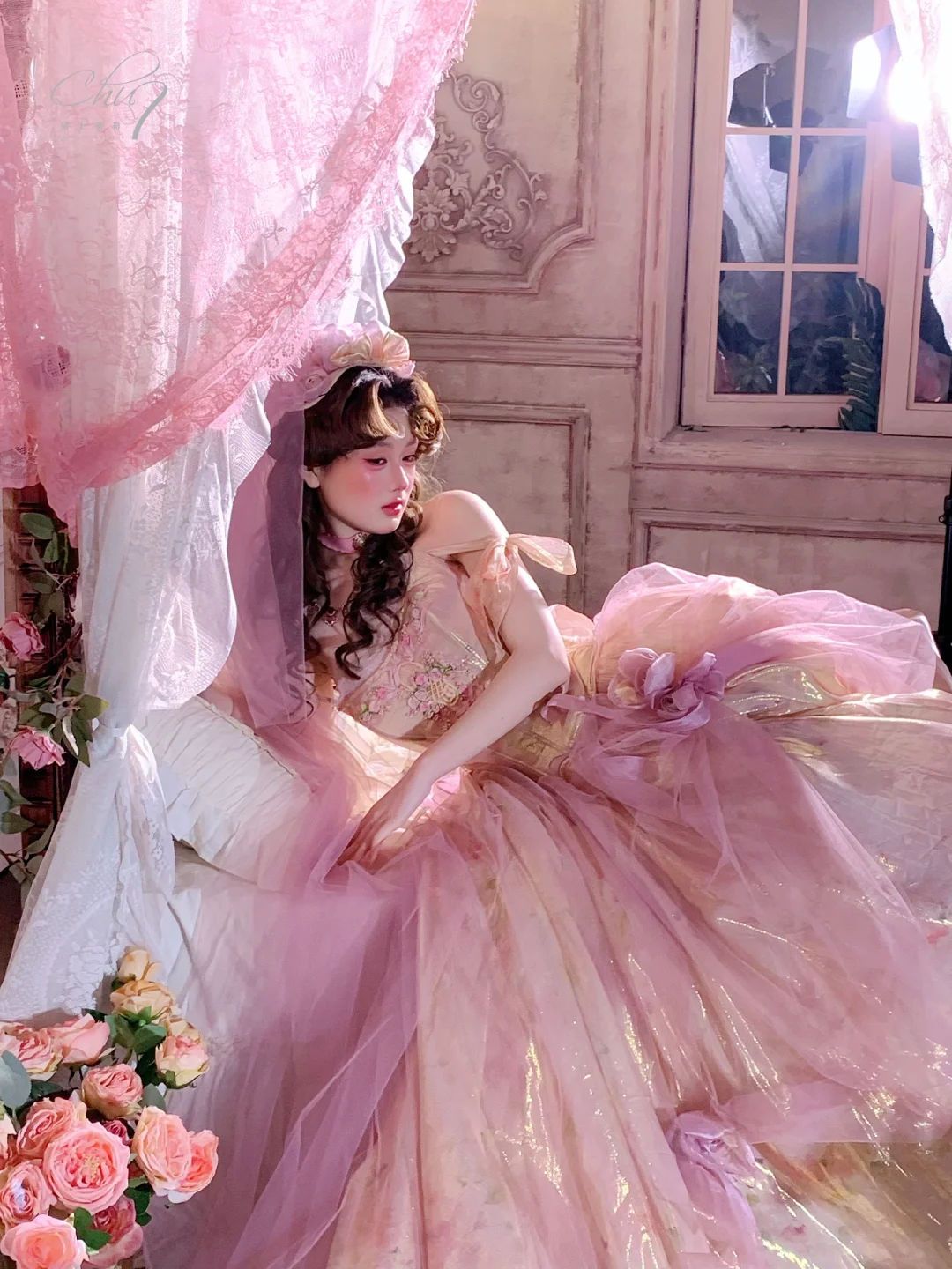 头纱垂落的瞬间,好像闯进了18世纪的油画里