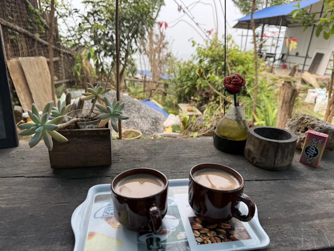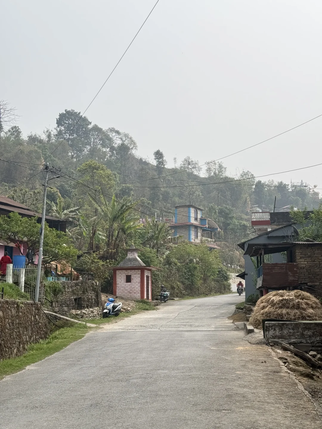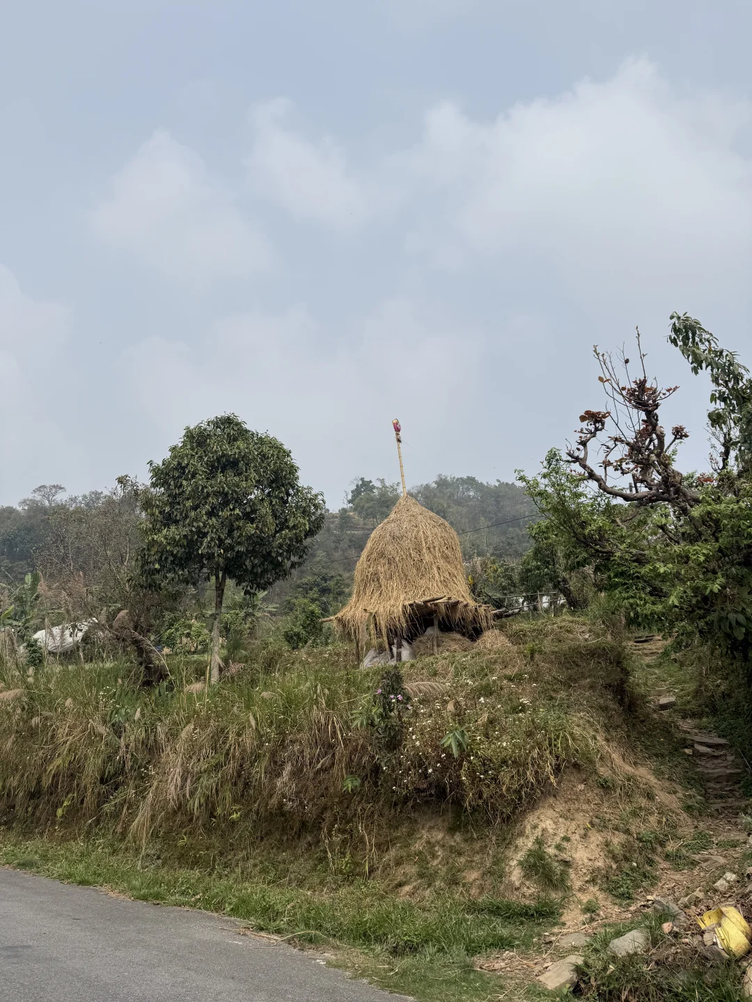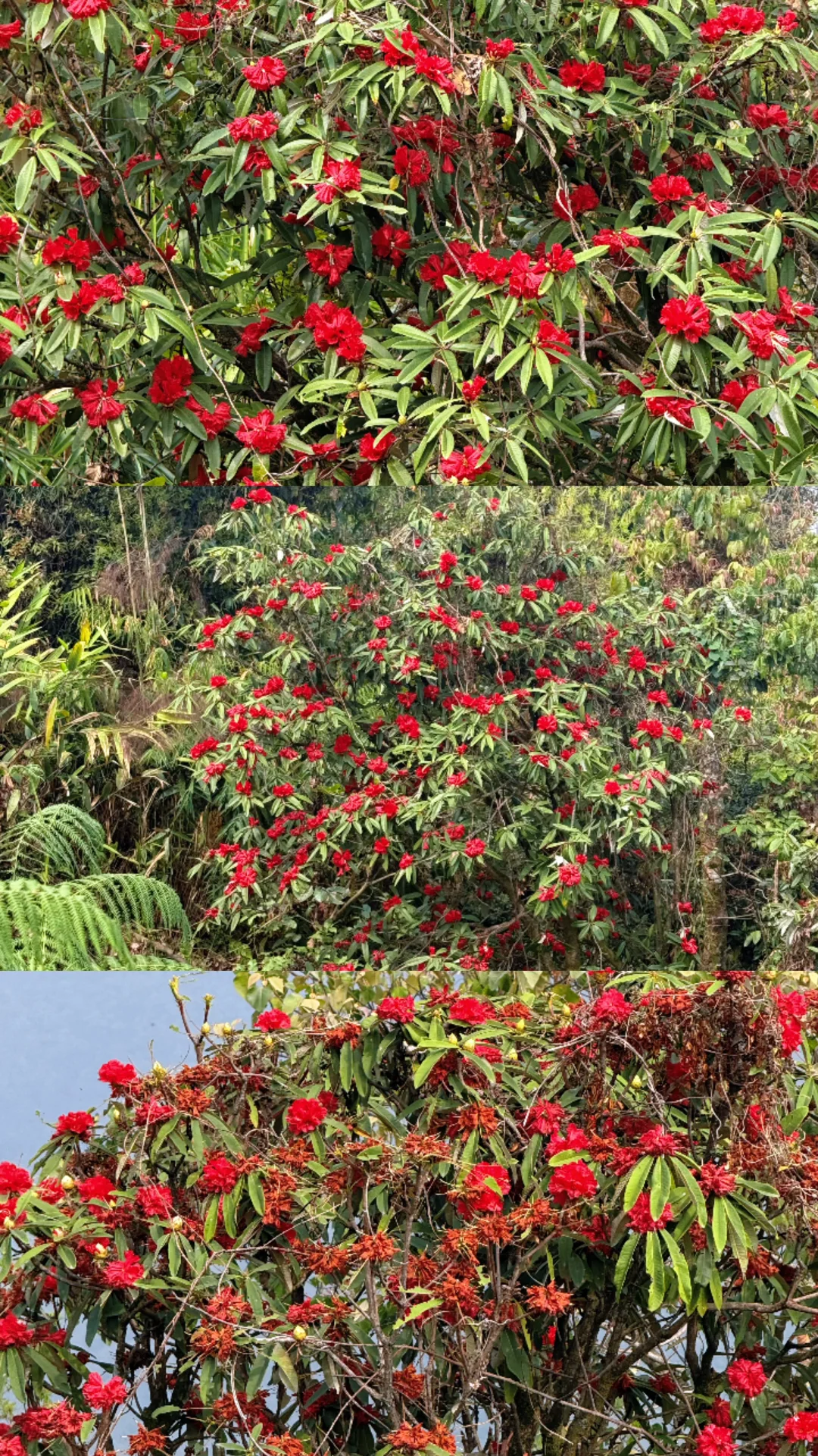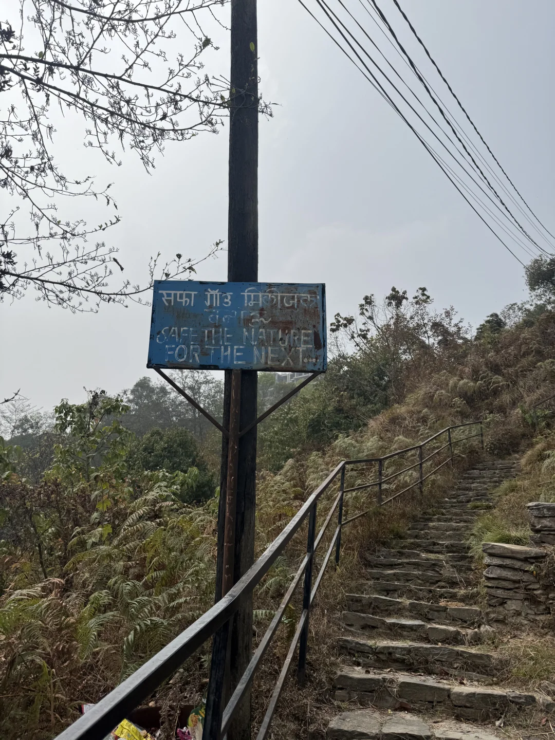 切到主路上后第一个休息点就在图4️⃣的位置,沿途可以吃饭喝水,如果不想走大马路,有小路可以竖切,路上会经过本地村庄、农田,反正最后都可以到达目的地:Sarangkot View Point 图12,天气好的时候可以看到四面被雪山环绕🏔️,不过今天到达山顶的时候没有看到👀雪山,但幸运的是看到了盛开的高山杜鹃花🌺,
