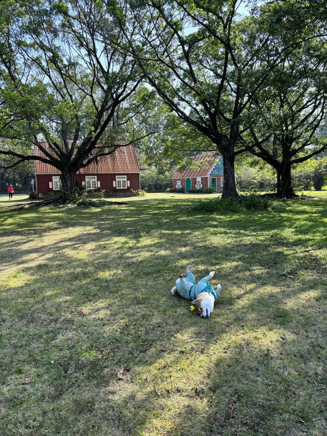 最近不想让他踩水 这里也刚好 虽然有湖但是和草坪距离比较远~