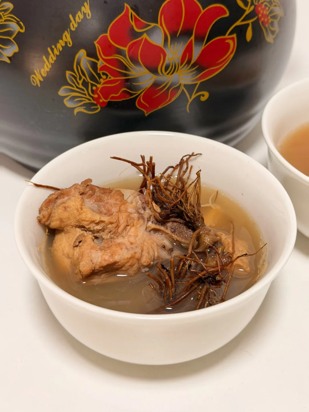 熬好的汤🍲清润回甘,带着瑶柱的鲜、红枣的甜,地胆头的清苦中和了油腻,喝起来毫无负担[萌萌哒R]