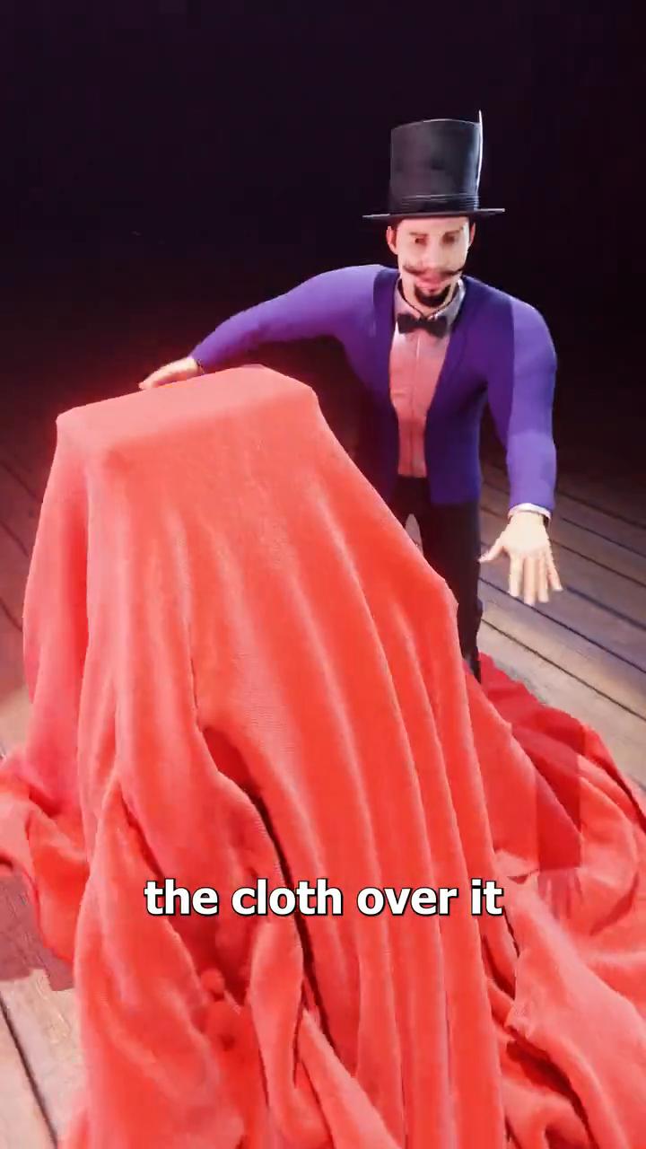 the magician whips away the cloth creating the illusion that she appeared from nowhere.