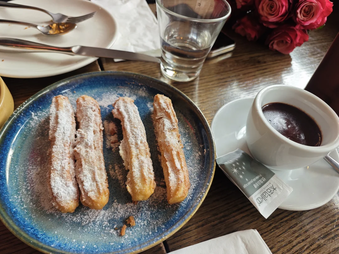 - 巧克力油条:现炸酥脆,蘸浓滑巧克力酱,经典西班牙甜品。
