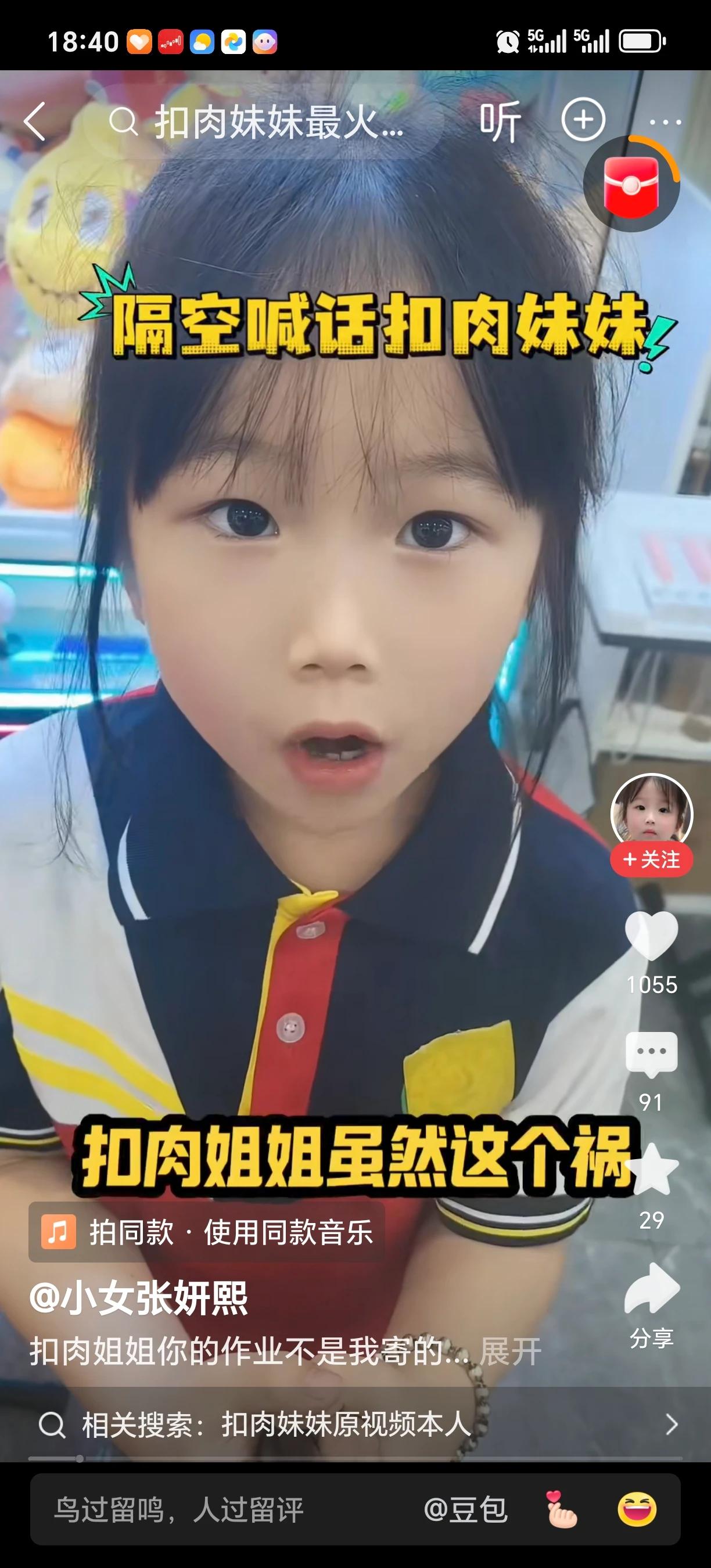 我发布的评论:张妍熙回复你了扣肉妹妹 互动数破22了!