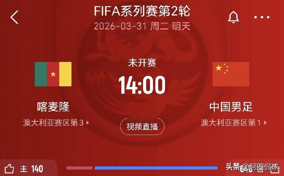 明天中午14:00,对阵世界排名第44位的“非洲雄狮”喀麦隆国家队,中国国家队主