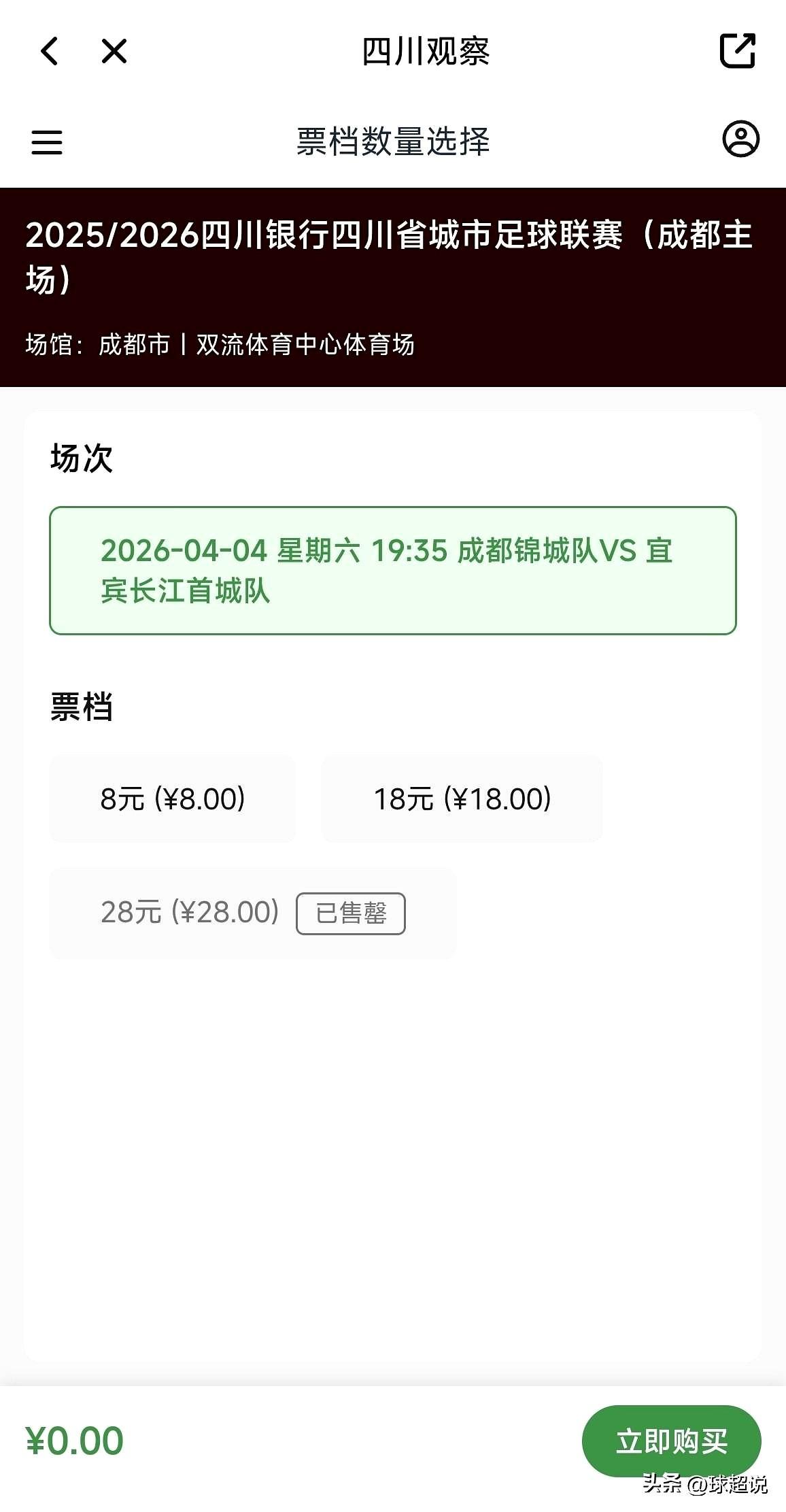 刷了眼川超第四轮的票,心里咯噔一下。成都对宜宾,咋就剩票了呢? 我晓得,这不是宜宾兄弟不给力,是心头那股劲儿憋着了。 看着自家“九妹”,再瞅瞅对面站着的,是咱自己的老熟人邹侑根,那滋味,五味杂陈哦。 输球是怕,但更怕邹指导难堪吧? 可足球不就是这样吗? 越是硬仗越要吼起来! 票可以空着,但看台上的那股劲儿不能散。 说好的一起干翻成都,人可以不到,心得到啊! 川超联赛