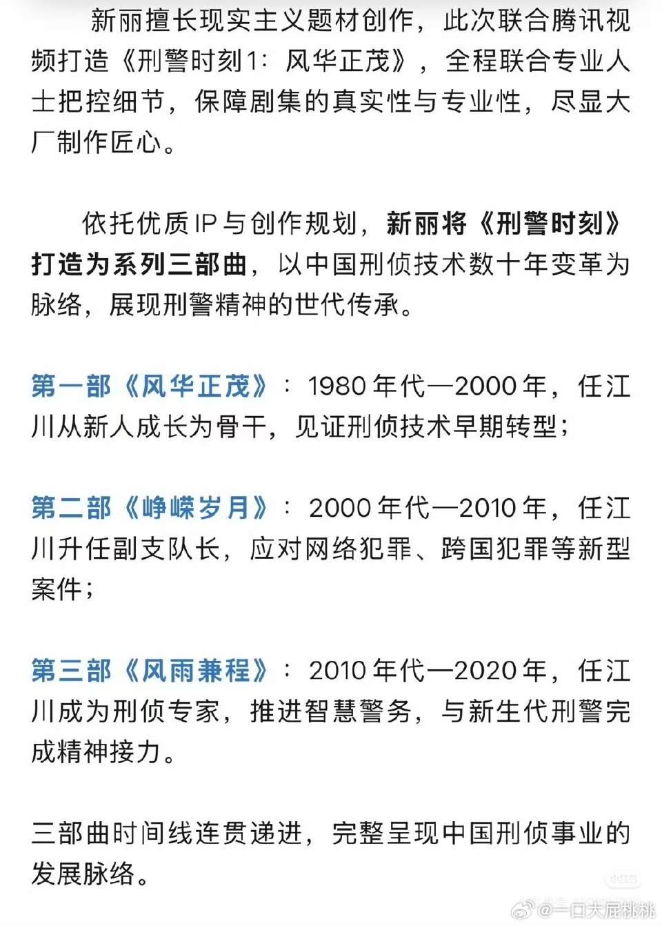 刑警时刻要拍三部曲 不会都是老白的吧太幸福了