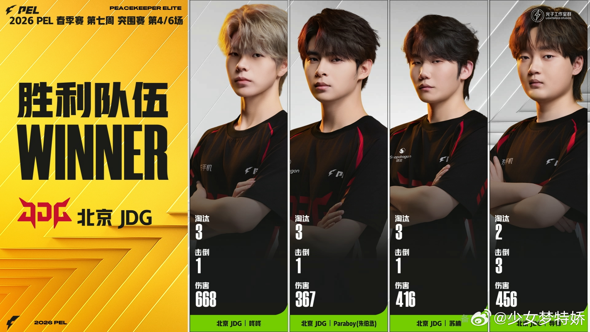JDG11淘汰满编吃鸡决赛圈配合看得太舒服,每个人都找准自己的位置,干净利落收下胜利,实力一目了然。