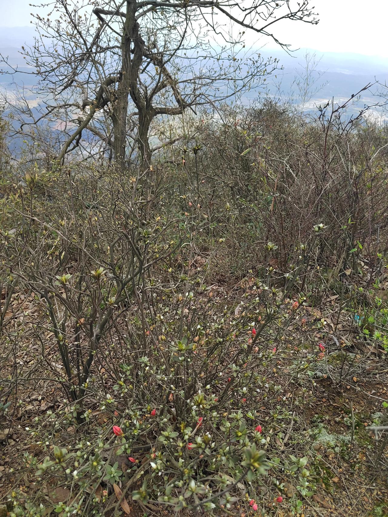 第一次爬丰城株山,第一次发现映山红的开放是由白至红。