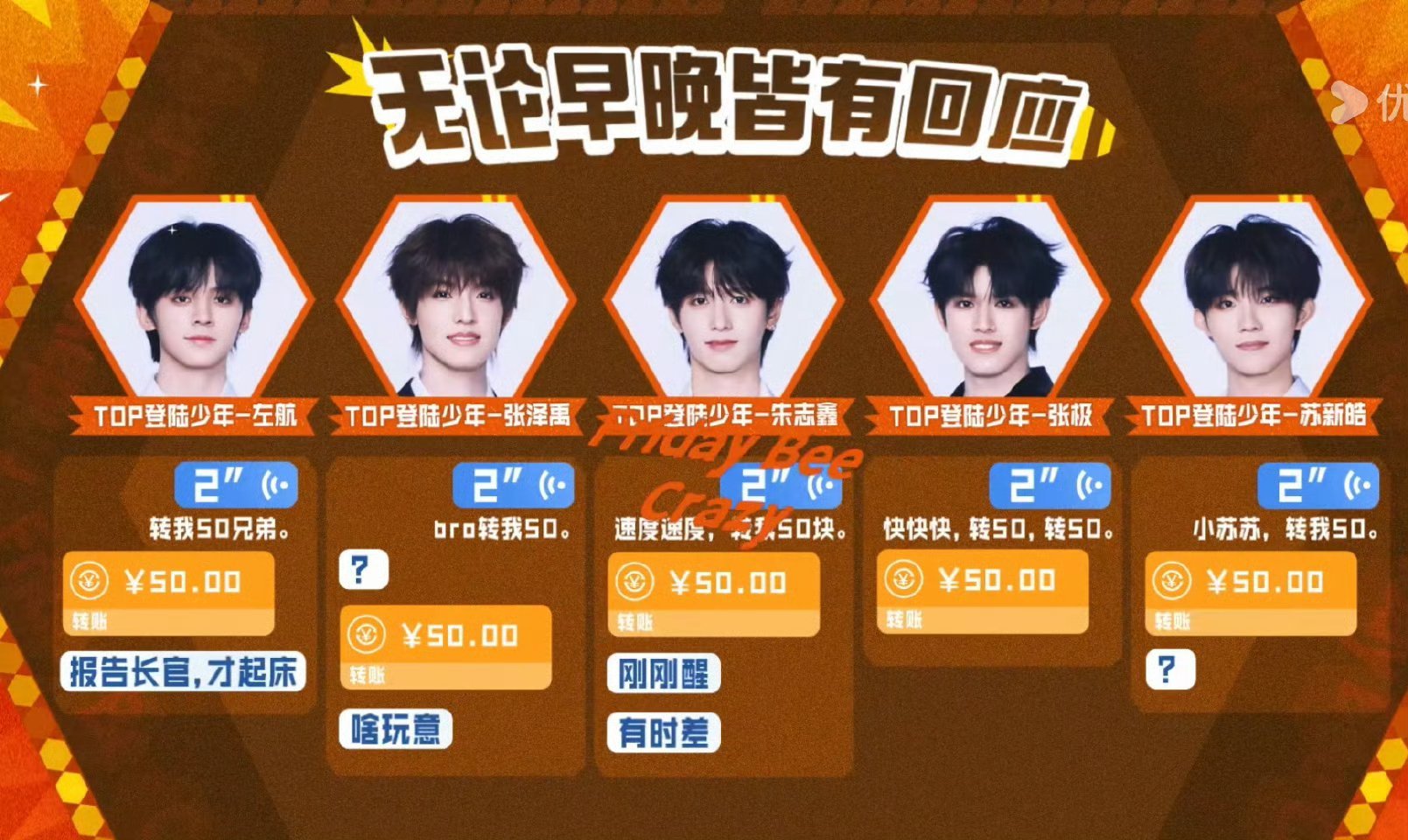 余宇涵问穆祉丞买皮肤吗这就是少年人的一呼百应吗?穆祉丞让兄弟们V 他50,所有人都是先转账再说话,余宇涵:我只关心兄弟是不是要背着我买皮肤了!穆祉丞一句话让兄弟V50