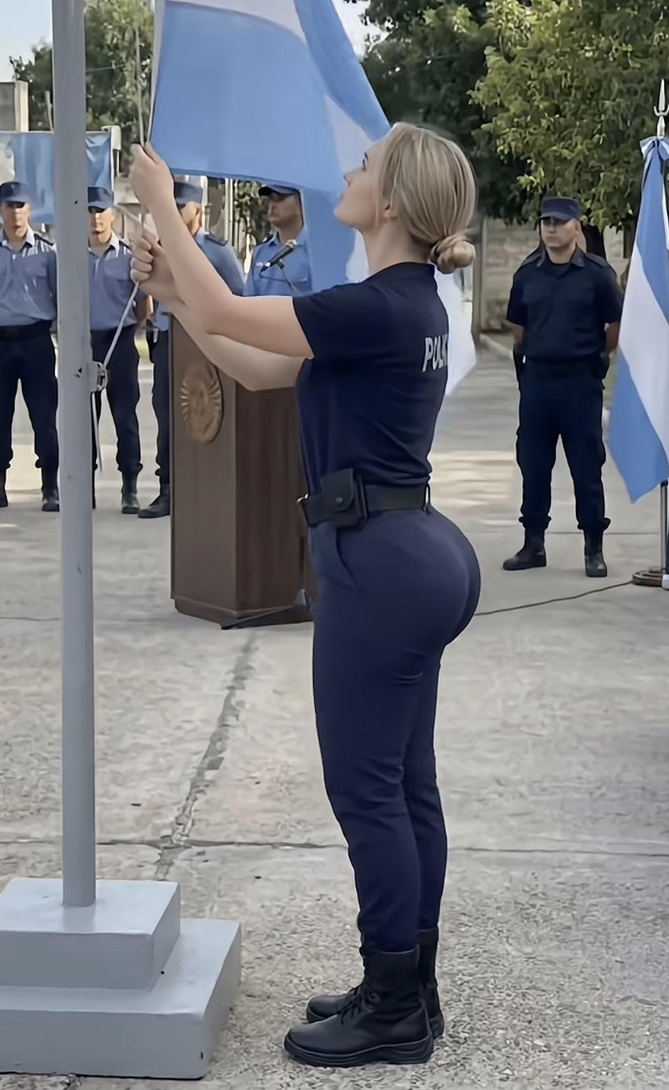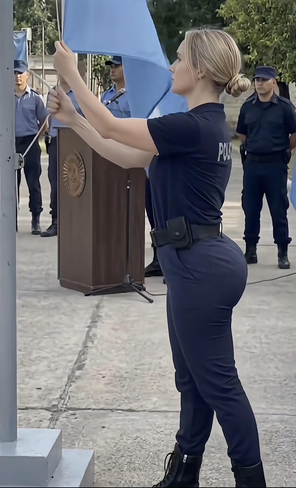 蓝白旗帜在晨光中扬起, 每一次拉绳都藏着庄重与力量。 警服在身,责任在肩, 以挺