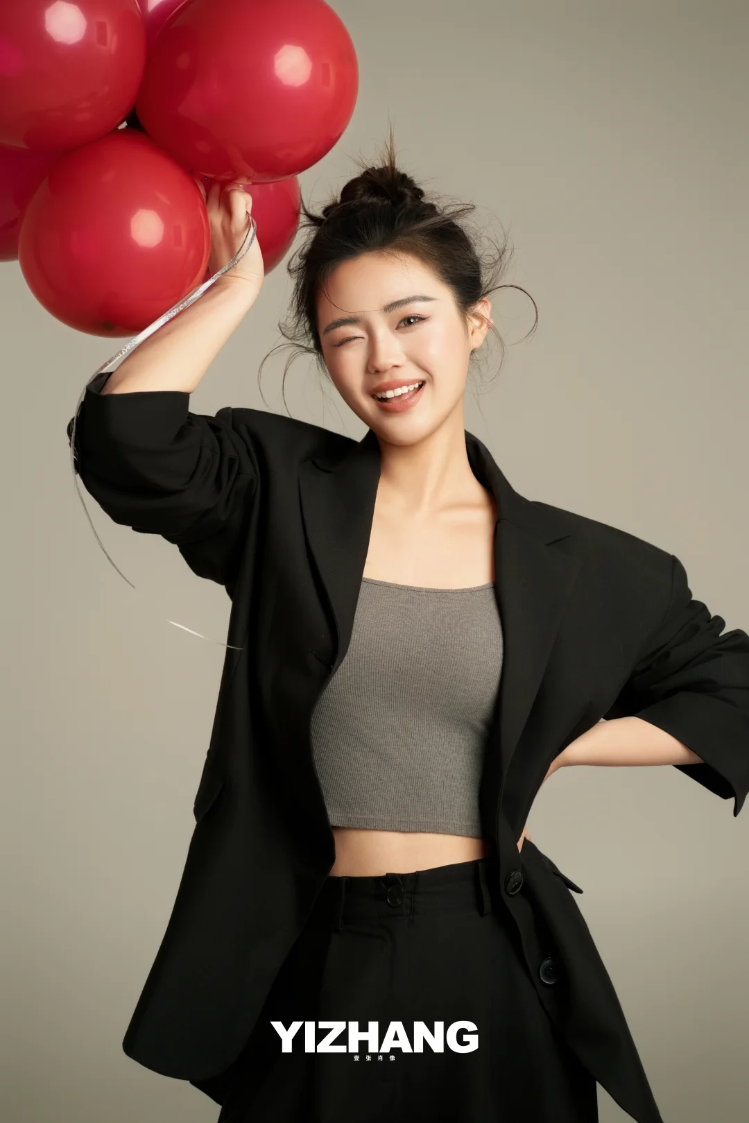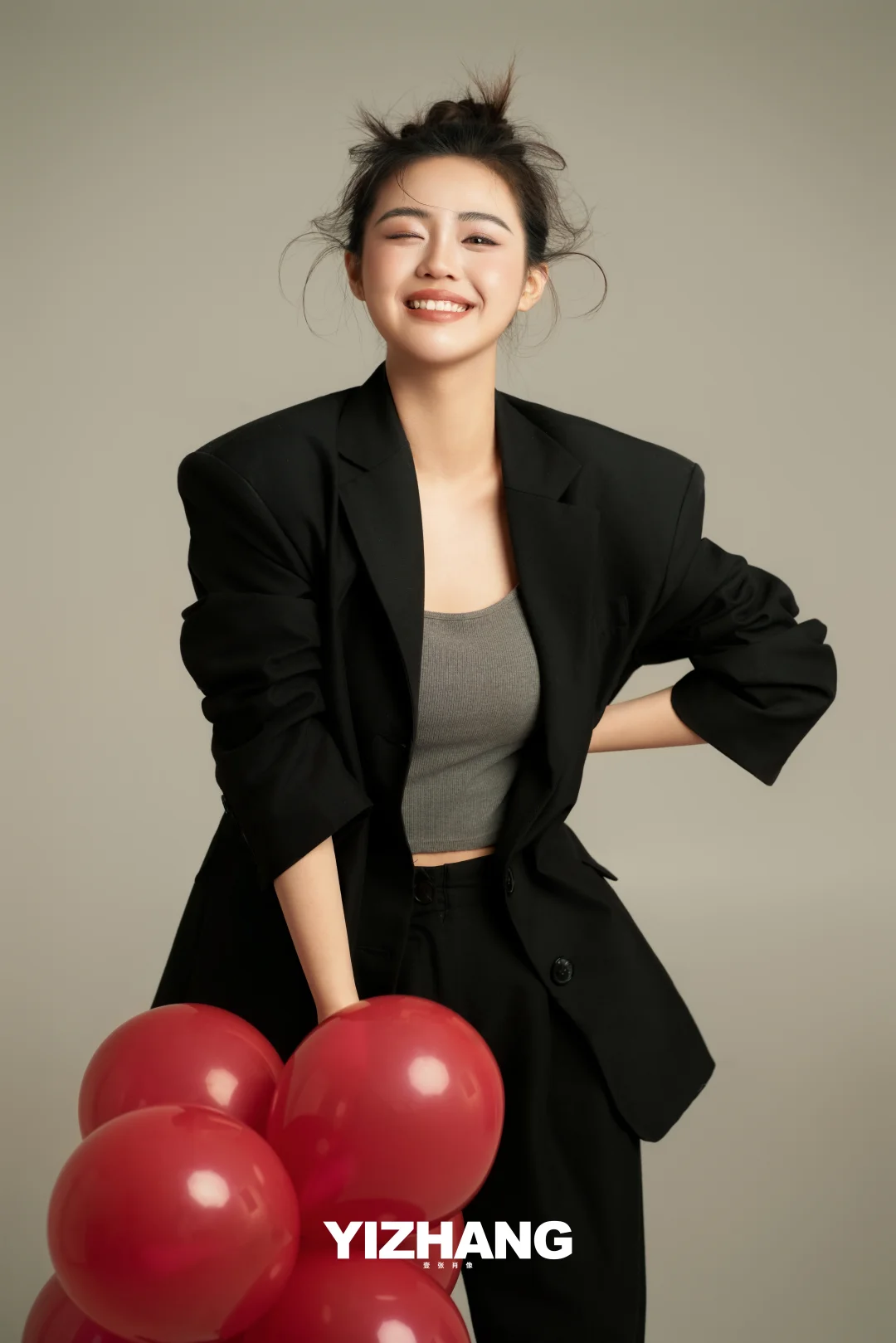 黑西装×红气球|甜酷少女的本命写真公式✨
