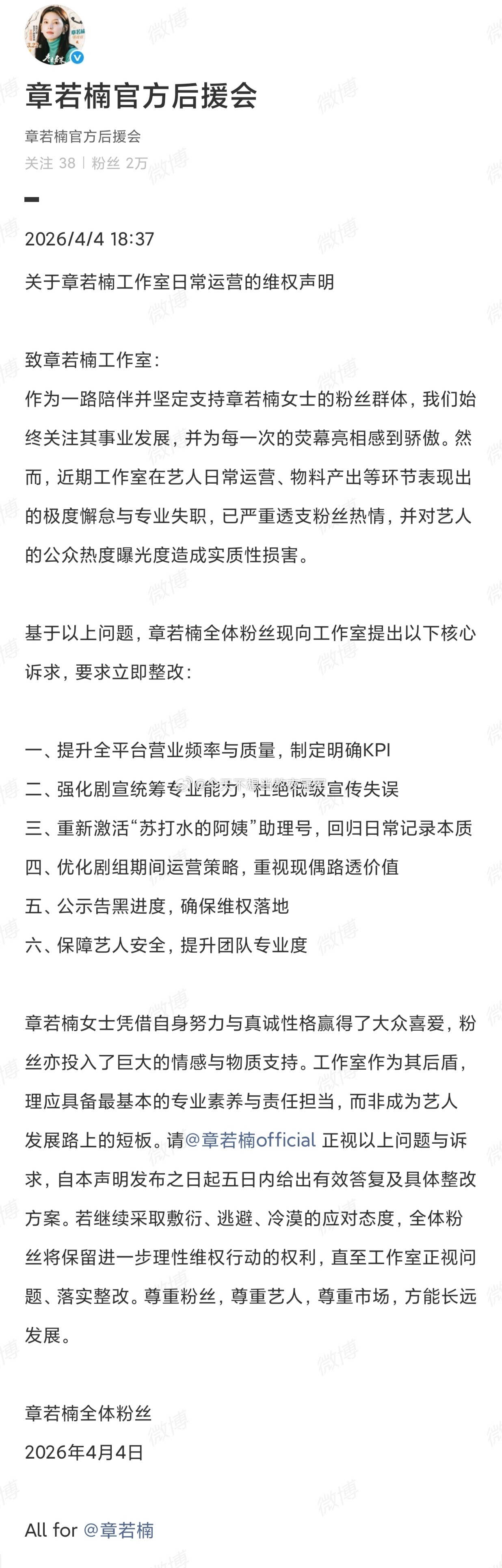 章若楠粉丝在维全中,要求工作室尽快整改,回应粉丝诉求章若楠收工后就健身了