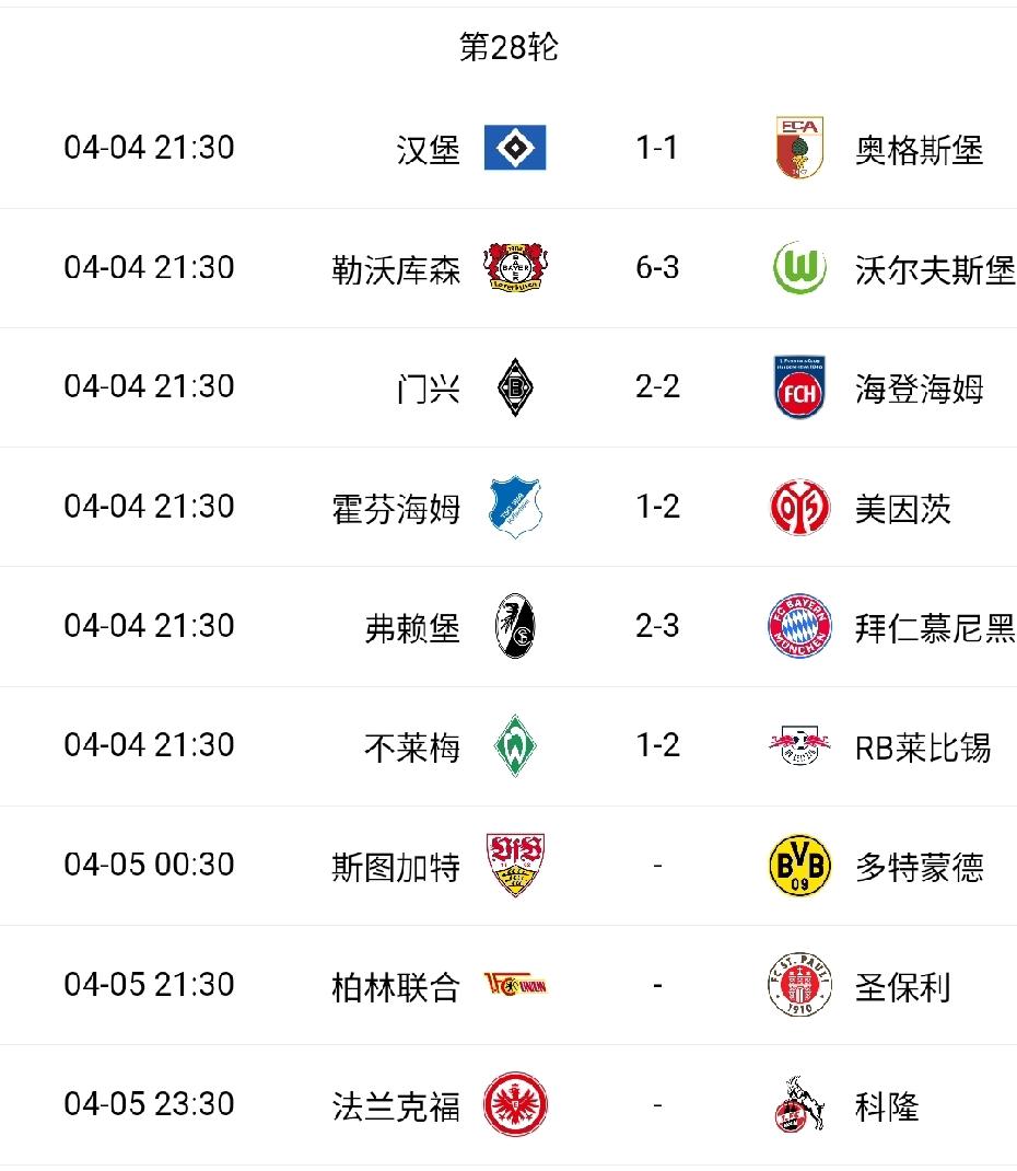 德甲第28轮结束大部分赛事,拜仁依然强势,又是一场3-2绝杀,它在德甲就是巨无霸存在。