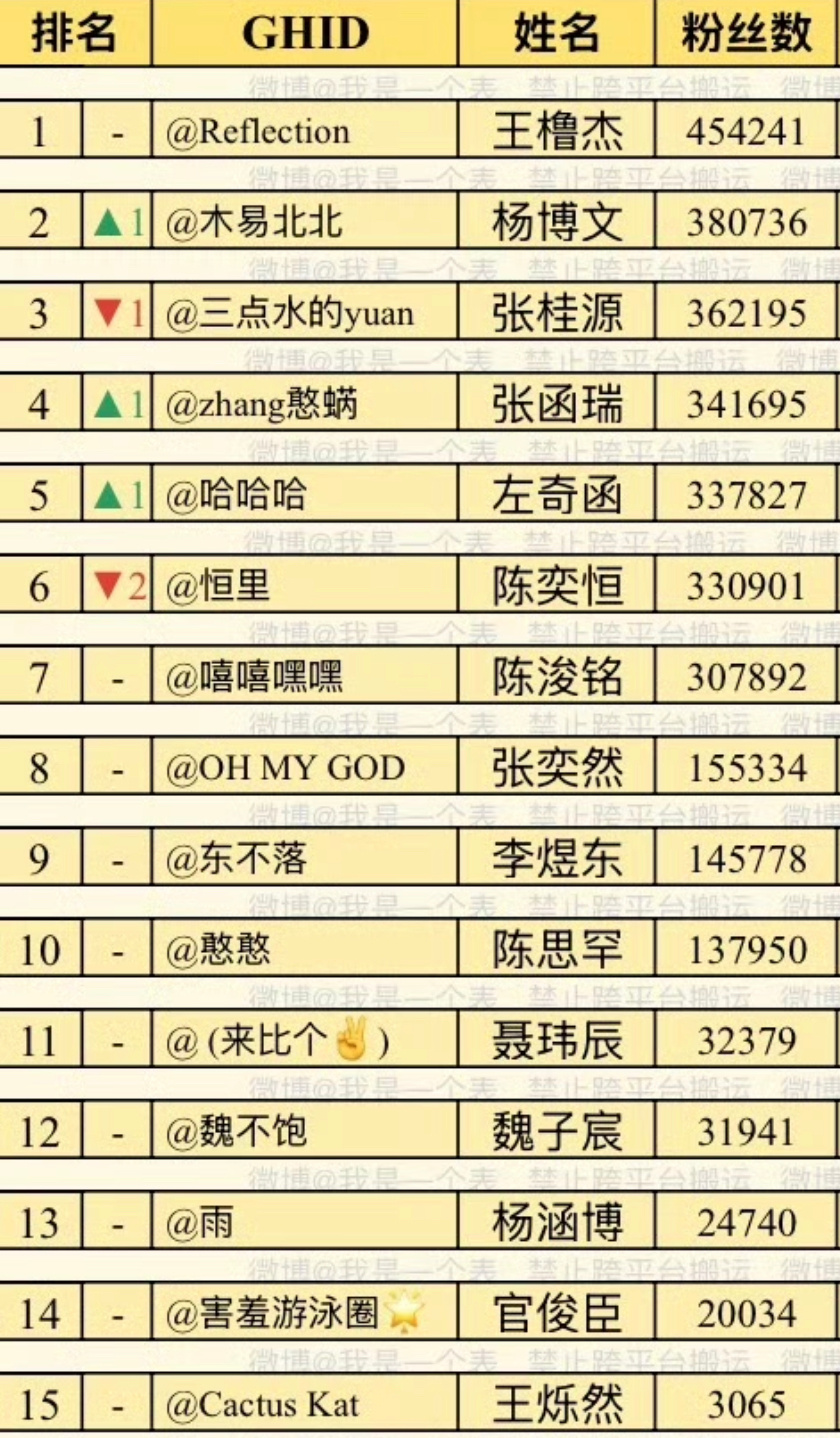 TF四代高会 最新排名📊王橹杰 杨博文 张桂源 张函瑞 左奇函 陈奕恒 陈浚铭 张奕然 李煜东 陈思罕