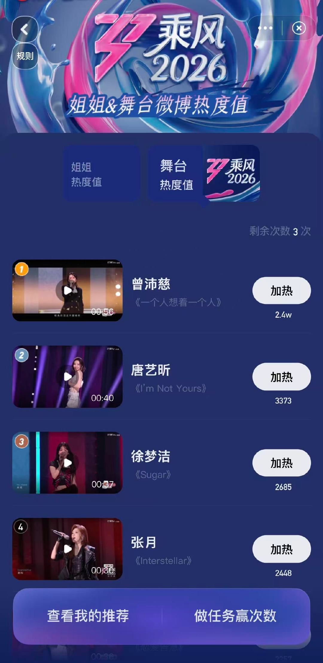 乘风热度值乘风2026热度值 乘风2026热度值,你支持哪位姐姐