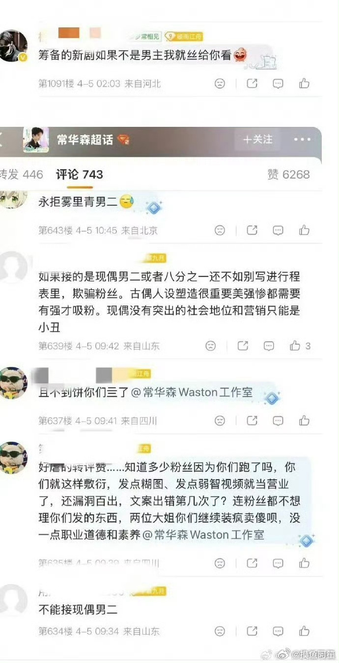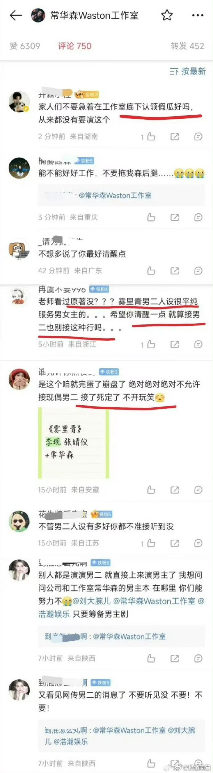 常华森粉丝拒绝雾里青给李现和张婧仪演男二