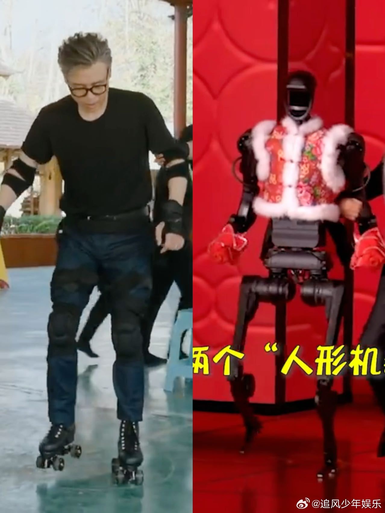李乃文轮滑像春晚机器人李乃文在五哈的轮滑表现太有梗,一开始连站稳都难,还总意外劈叉,音乐一响就像开启自动模式,步伐卡点精准,机械感满满,硬生生滑出专属的轮滑进行曲