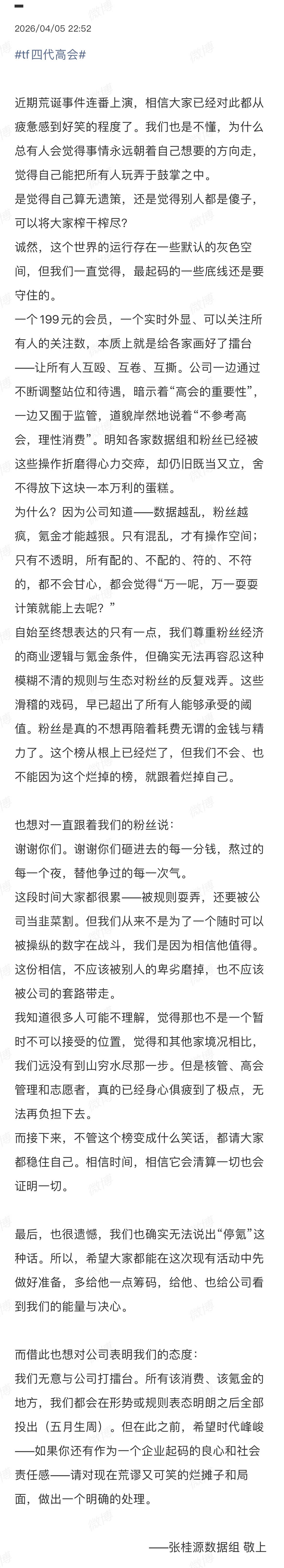 针对目前四代高会愈演愈烈王橹杰 左奇函 杨博文 张桂源开始发文维权 四代高会