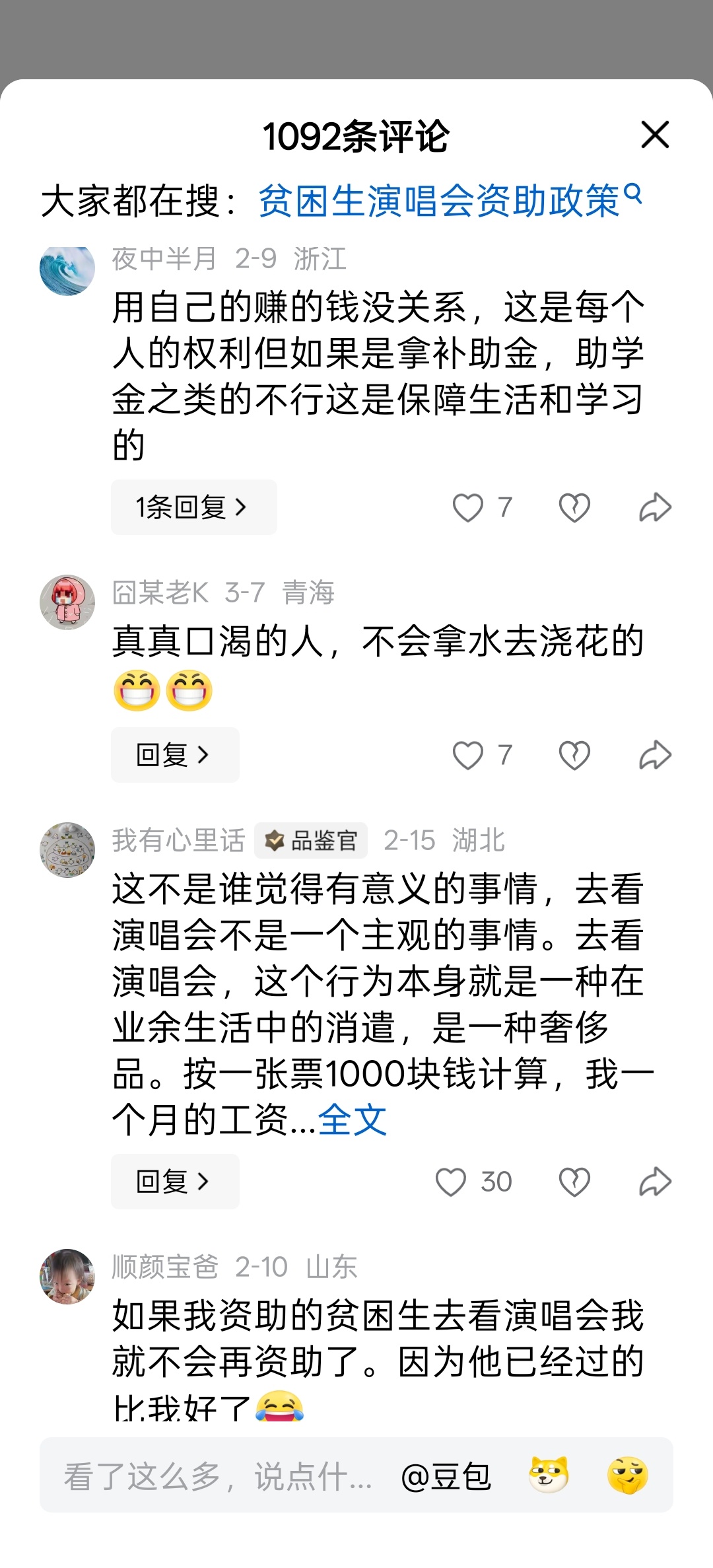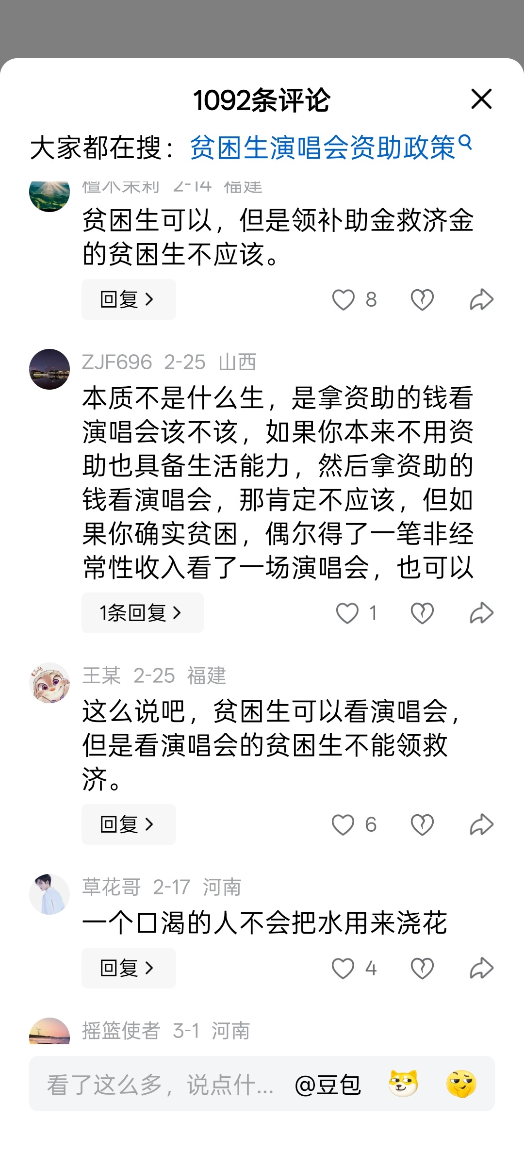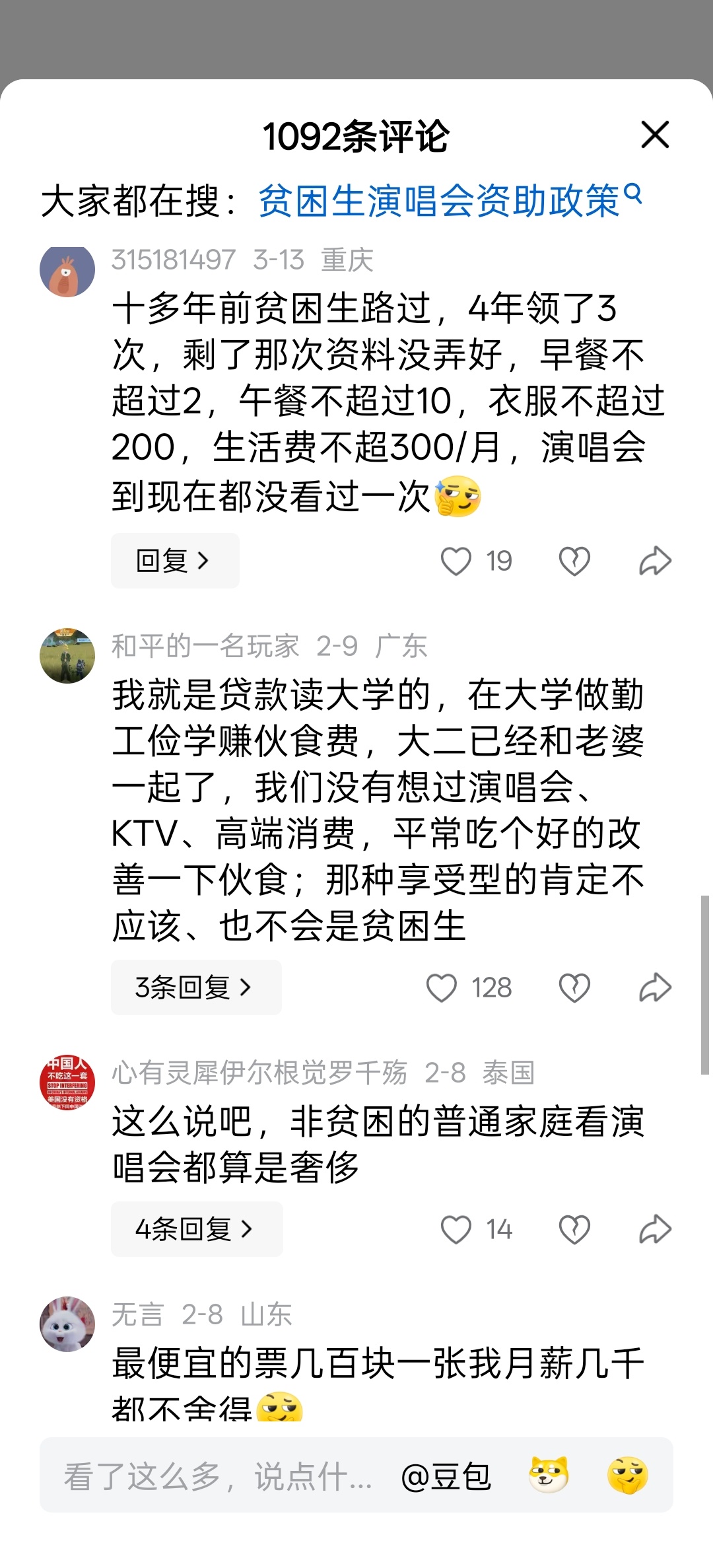 贫困生有权去看演唱会,但是去看演唱会的贫困生无权领取国家的贫困生补助和励志奖学金!