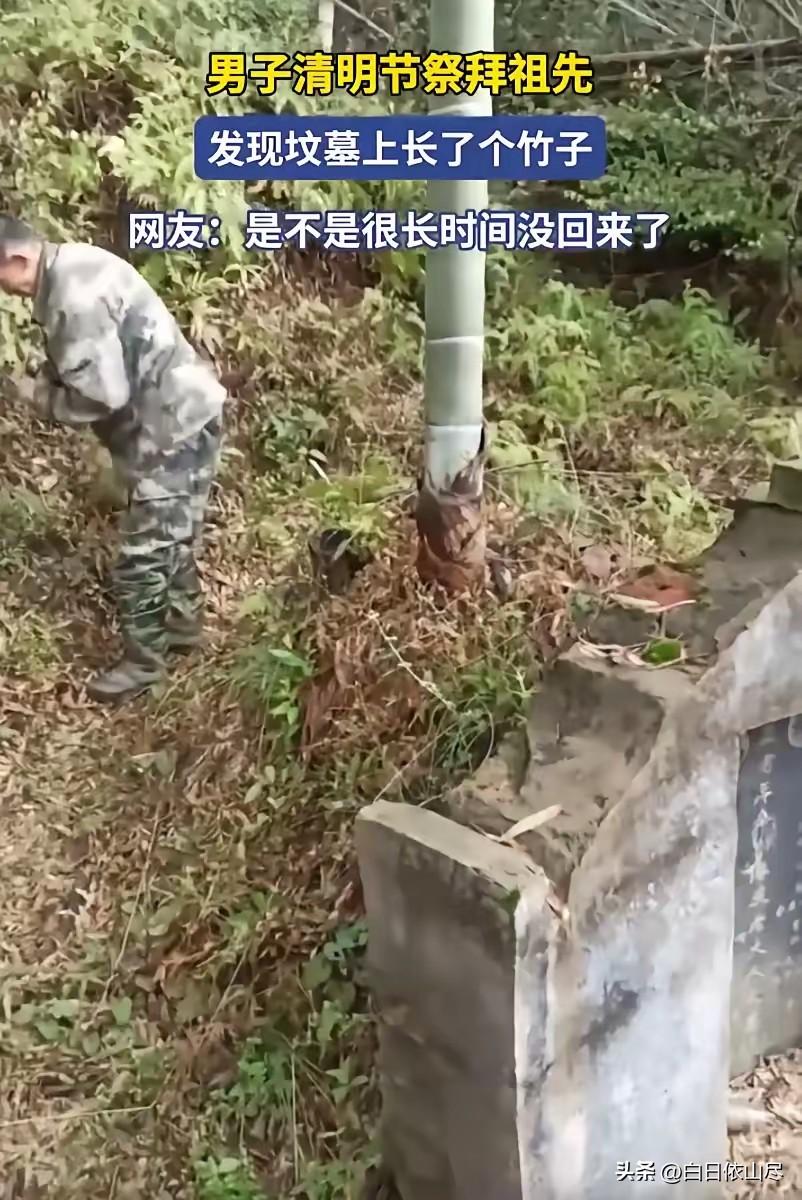 江西,一男子清明上山祭祖,结果到了地方,却发现祖先的坟上竟然长了一根竹子,而且不偏不倚的长在了坟头正中间,网友:这是不是很长时间没回来了? 江西某地,一名男子趁着清明假期返乡,踏上了前往祖先墓地的山路。按他的说法,自家几代人都坚持清明祭祖,从未间断,这次也是提前规划好时间,准备好好给先人添添土、供供品。可当他拨开山路两旁的杂草,终于走到祖坟前时,眼前的一幕让他瞬间愣住,大脑竟有片刻的空白。 只见祖辈的坟茔前,原本平整的坟头正中央,赫然长出了一根翠绿的竹子。这根竹子不偏不倚,正好立在墓碑正下方的中心位置,细细的竹竿笔直向上,在周围枯黄的草丛和泥土中显得格外扎眼。男子站在原地,反复确认这就是自家的祖坟,没有走错地方,心里的疑惑却越来越深。 他记得上一次来祭祖的时候,这里还是一片干净的泥土,别说竹子了,连棵像样的杂草都很少。这根竹子就像是凭空出现的一样,硬生生从坟顶的泥土里钻了出来。男子小心翼翼地绕着祖坟看了几圈,试图找出缘由,可除了这根突兀的竹子,周围再无其他异常。 这根竹子的生长,确实有些不合常理。通常来说,坟头的土壤经过人工夯实,又长期有人打理,并不适合植物的大规模生长,更别说长成一根亭亭玉立的竹子了。男子伸手轻轻碰了碰竹竿,感觉还挺结实,显然已经生长了一段时间,并非刚冒出来的嫩芽。 周围的乡亲们听说了这件事,也都纷纷赶来围观。大家你一言我一语,议论纷纷,都觉得这事太稀奇了。有人凑近了仔细看竹子的根系,有人在旁边拍照记录,还有人开始猜测这根竹子出现在这里的原因。一时间,原本安静的山间祖坟前,变得热闹起来。 男子站在人群中,心里五味杂陈。一方面,他觉得这景象确实神奇,大自然的鬼斧神工让人惊叹;另一方面,他又有些许的不安和纠结,不知道这根竹子对祖坟来说,究竟是吉是凶,也不知道该不该现在就把它拔掉。按照当地的习俗,祖坟需要保持整洁,可这竹子长得太不是地方了。 他没有立刻动手处理,而是先完成了祭祖的仪式。点香、烧纸、磕头,每一个步骤都做得一丝不苟。只是在磕头的时候,他忍不住多看了几眼坟头的竹子,心里默默想着祖先的庇佑,也在琢磨这突如其来的变化。整个祭祖过程,他比以往更加用心,也更加虔诚。 仪式结束后,男子没有急着离开,而是坐在旁边的石头上,继续观察这根竹子。阳光透过树叶洒下来,在竹子上投下斑驳的光影,微风一吹,竹叶轻轻摇曳,发出沙沙的声音。这声音在山间回荡,和周围的寂静形成了鲜明的对比,也让他的心情渐渐平静下来。 他开始回忆起小时候跟着长辈来祭祖的场景,那时候长辈们常说,祖坟的一草一木都有讲究,长得好不好,关系到家族的运势。如今这根竹子长在坟正中间,到底是好是坏,他心里没底。他拿出手机,拍下了竹子的照片,发给了家里的长辈,等待他们的意见。 网友们看到这张照片后,也炸开了锅。评论区里,大家的观点各不相同。有人说这是“竹报平安”的吉兆,竹子象征着节节高升、平安顺遂;也有人说,竹子根系发达,可能会影响祖坟的风水;还有人调侃,这是不是很长时间没回来了,祖先都要“长草”了,结果草没长,长出了竹子。 男子看着网上的各种评论,心里更加纠结了。他不知道该相信哪种说法,也不知道该如何处理这根竹子。如果拔掉,怕破坏了所谓的风水;如果不拔,又觉得祖坟中间长根竹子,总归是不太对劲。他陷入了两难的境地,不知道该做何选择。 其实,从科学的角度来看,竹子的生长可能只是偶然的种子传播,比如被风吹来,或者被鸟类衔来,恰好落在了适合它生长的土壤里,然后生根发芽。这只是一种自然现象,并没有什么特殊的寓意。但在传统观念里,人们往往会赋予这种事情更多的情感色彩和解读。 男子最终还是没有拔掉竹子,他选择尊重自然的生长,也把它当作一种特殊的纪念。他希望祖先能保佑家人平安顺遂,也希望这根竹子能给家族带来好运。离开的时候,他最后看了一眼那根立在坟头的竹子,心里默默许下了心愿,然后转身踏上了下山的路。 对此,你们有什么看法,欢迎评论留言~