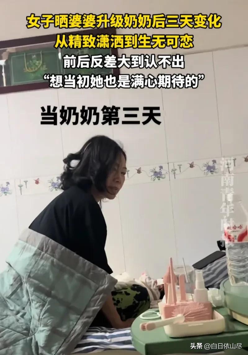 笑死了!河北,女子刚刚生完孩子,孩子的奶奶就迫不及待的来帮忙,第一天来的时候打扮的相当精致,可才过去三天,就完全变了一个人,披头散发的样子让人哭笑不得。网友:等我当了奶奶估计比她还惨 河北一位女子刚生完宝宝,全家都沉浸在迎接新生命的喜悦里,孩子奶奶更是第一时间赶来,主动承担起照顾儿媳和宝宝的重任,满心欢喜地想要帮小两口分担压力,开启了带娃陪护的日子。 奶奶第一天踏进家门时,模样格外精致。头发梳理得整整齐齐,妆容淡雅得体,身上穿着干净利落的衣服,连鞋子都擦得一尘不染,整个人看起来精神饱满,完全是精心收拾过后的状态。 彼时奶奶满心期待,想着要好好照顾儿媳和小孙子,把一切都打理得井井有条,面对刚出生的宝宝,眼神里满是疼爱,举手投足间都透着从容,丝毫没有慌乱的模样。 接下来的日子,奶奶全程投入到照顾宝宝和儿媳的琐事里。白天要帮忙喂奶、换尿布、哄睡,夜里还要时不时起来查看宝宝的情况,几乎没有片刻清闲,所有精力都放在了孩子身上。 原本精致的生活节奏,被频繁的带娃琐事彻底打乱。刚收拾好的头发,没一会儿就因为抱孩子、哄睡变得凌乱,也没多余时间重新梳理,只能任由头发随意散落着。 精心打理的妆容,也在日夜操劳中顾不上维持,每天围着宝宝打转,根本抽不出时间化妆打扮,脸上渐渐褪去了往日的精致,多了几分疲惫和随性。 仅仅过了三天,奶奶的状态就发生了翻天覆地的变化。再次出现在家人面前时,已然是披头散发的模样,衣服也换成了宽松舒适的居家服,和第一天的精致模样判若两人。 女子看着婆婆前后的巨大反差,觉得既暖心又好笑,暖心的是婆婆全心全意帮忙带娃,毫无怨言,好笑的是精致奶奶短短三天就被带娃生活“磨平”了精致感。 女子随手拍下婆婆这三天的对比画面,分享到日常社交平台,没想到瞬间引发众多网友的共鸣,大家纷纷被这真实的一幕逗乐,直呼太有代入感,完全是自家老人带娃的真实写照。 网友们纷纷在评论区分享自家长辈带娃的经历,不少人表示,自家老人刚帮忙带娃时也是精致十足,没过几天就变得随性朴素,全都是为了孩子操劳的真实模样。 还有不少年轻网友调侃,等自己以后当了奶奶,面对带娃的繁琐日常,估计状态会比这位奶奶还要狼狈,根本顾不上打理自己,满心满眼都会是孩子。 带娃本就是一项耗费精力的琐事,尤其是照顾刚出生的新生儿,更是需要时刻紧绷神经,日夜操劳,即便再爱精致的人,也会在忙碌中无暇顾及自身形象。 这位奶奶的转变,没有丝毫刻意,全是发自内心疼爱晚辈、尽心照顾家庭的真实体现,看似形象大变,背后却是满满的付出和对家人的爱意,格外真实动人。 生活里很多长辈都是如此,为了帮子女分担压力,甘愿放下自己的精致生活,全身心投入到家庭琐事中,这份默默的付出,也让无数人感受到了亲情的温暖。 对此,你们有什么看法,欢迎评论留言~