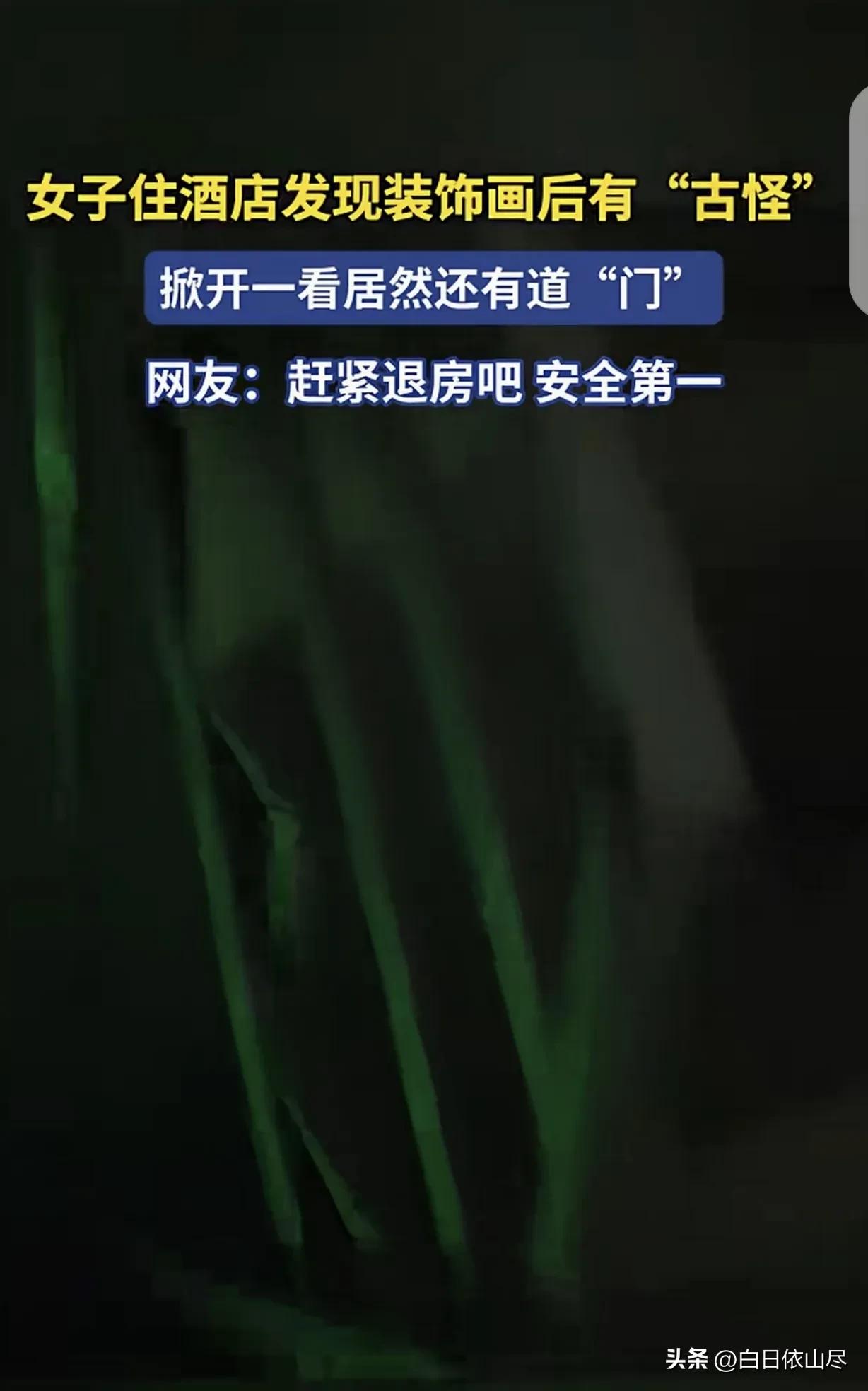 “细思极恐!”湖北,一女子入住酒店402房间,看见墙上有幅装饰画,看着怪怪的,她掀开装饰画,惊讶的发现后面是一扇“暗门”,说是“门”,其实就是一个带插销的帘子,她打开一看,顿时直冒冷汗,连夜换了房间,要不是附近只有这一家酒店,她酒店都换了。 湖北一名女子因行程安排,入住当地一家酒店的402房间。办理完入住手续推开房门时,她并未觉得有异样,放下随身行李后,便开始整理自己的物品,准备稍作休息。 女子在房间内走动时,目光无意间落在墙面的装饰画上,心里莫名泛起一股别扭感。这幅装饰画挂在墙面显眼位置,画风和布局都显得很突兀,和房间整体装修格格不入,越看越让人觉得不对劲。 起初她只当是酒店装修审美不佳,没往深处想,可那股怪异感始终挥之不去。她站在画前仔细打量,发现画框边缘和墙面贴合得并不紧密,隐约能看到一丝缝隙,不仔细看根本难以察觉。 好奇心和心底的不安驱使着她,伸手轻轻掀开了这幅装饰画。眼前的一幕让她瞬间愣住,原本以为是实心墙面的地方,根本不是墙体,而是一处被刻意遮挡起来的隐蔽空间。 这处空间并非真正意义上的房门,只是一块带着简易插销的帘子,被装饰画完美掩盖住,平日里住客很难发现。女子盯着这道暗藏的帘子,后背瞬间冒出冷汗,心跳也骤然加快。 她缓了缓神,壮着胆子轻轻拉开这道带插销的帘子,朝里面看了一眼。帘子后方的空间昏暗不明,看不清具体通向何处,未知的恐惧瞬间笼罩住她,让她浑身都觉得不自在。 女子越想越觉得害怕,入住酒店原本是为了安心休息,没想到房间里竟藏着这样的隐患,隐私和安全都毫无保障。她不敢在这间402房间多待一分钟,只想尽快离开这个让人不安的空间。 她立刻收拾好自己的行李,第一时间联系酒店前台,说明房间内的情况,提出更换房间的要求。酒店工作人员核实情况后,为她办理了换房手续,安排了其他房间入住。 女子坦言,当时附近只有这一家酒店可供入住,没有其他备选的住宿地点。若是周边有别的酒店,她会直接办理退房,彻底离开这家酒店,根本不会选择只是更换房间。 换完房间后,女子依旧心有余悸,回想起刚才掀开装饰画、发现暗门帘子的瞬间,还是会觉得后怕。原本普通的一次住宿,却遭遇了这样的事,让她对酒店住宿的安全问题多了几分担忧。 她事后回想,若是自己没有察觉装饰画的怪异,没有掀开查看,根本不会知道房间里藏着这样一处隐蔽通道。住客在房间内的一举一动,都有可能处于毫无防备的暴露状态,实在让人不安。 这件事也让她意识到,外出入住酒店时,一定要仔细检查房间内的各个角落,尤其是墙面、家具等容易被忽略的地方,多留意细节,才能更好地保障自身的隐私和人身安全。 女子将自己的这段经历默默记在心里,也打算提醒身边外出住宿的亲友,入住酒店后多留心房间内的异常之处,不要放过任何看似不起眼的细节,避免遇到类似的情况。 一次普通的酒店入住,却因为这面暗藏的帘子变得惊心动魄,女子虽然顺利换了房间,可这段经历带来的不适感,依旧久久没有散去,成了一次难忘又后怕的住宿体验。 对此,你们有什么看法,欢迎评论留言~
