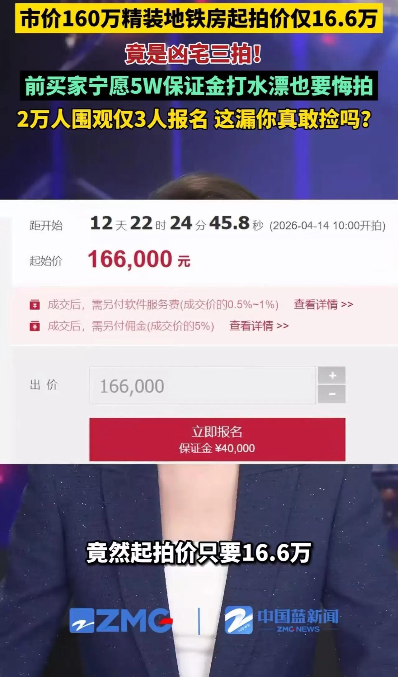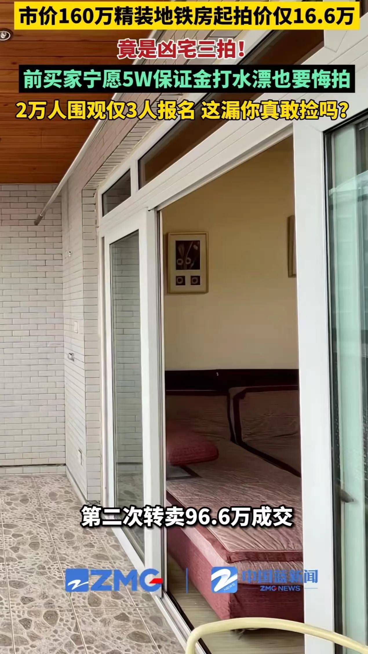 这套成都“凶宅”三番五次上拍卖台,不是因为“闹鬼”,而是市场心理、投机失败、资金风险和舆论放大叠加的结果。简单说:可怕的不是鬼,是这套房已经成了“烫手山芋”,没人敢接盘。 一、房子的“前世今生”(速览) - 房源:成都成华区,89.7㎡精装、近地铁,市场价约160万。 - 事件:2024年发生租客非正常死亡(明确标注“凶宅”)。 - 三次拍卖:1. 2025.11:26.6万起拍 → 105.6万成交(买家过户,想转手) 2. 2026.1:26.6万起拍 → 96.6万成交 → 买家悔拍,5万保证金没收 3. 2026.4:16.6万起拍(三拍) → 2.5万人围观,仅3人报名 二、网友问:“接二连三拍卖,为什么?” 核心原因有4点: 1. 凶宅本身:心理门槛 + 金融歧视 - 心理关:绝大多数人忌讳,买家圈子极小。 - 金融关:- 银行很难批按揭(或首付极高、利率高)。 - 基本要全款,把普通家庭挡在门外。 - 市场折价:凶宅一般比市价**低25%–30%**才有人考虑。 2. 前两次是“投机翻车”,不是没人买 - 首拍:有人赌“低价捡漏+转手赚差价”,105.6万拿下。 - 二拍:新买家想96.6万接盘再赚,结果资金链断了,宁愿亏5万保证金也不付款。 - 结果:- 炒房客看清:凶宅转手极难、接盘侠太少。 - 市场信心崩了:连投机客都不敢来了。 3. “三拍”本身就是最大利空:越拍越没人敢要 - 一次凶宅:打折能卖。 - 两次成交、一次悔拍、三次上架:- 大家会想:为什么前两个人都不要?是不是有更大的坑? - 产权、纠纷、历史问题被反复怀疑。 - 心理恐惧被舆论无限放大。 4. 起拍价16.6万:只是“引流诱饵”,不是真实价值 - 法院/处置方大幅降价只为吸引眼球。 - 真要成交,大概率还是要几十万甚至近百万。 - 但越降价,越显得“有问题”,形成恶性循环。 三、总结:为什么同一个宅反复拍卖? 不是鬼吓人,是这套房已经“烂名声”了: 1. 凶宅属性 → 流通性差、贷款难 2. 投机失败 → 炒房客撤离 3. 连续悔拍+三拍 → 人人觉得“有大坑” 4. 舆论反复炒作 → 心理恐惧拉满 一句话: 凶宅本身不可怕,可怕的是它变成了“谁买谁砸手里”的死盘,连投机客都怕了。 素材取于网络侵权删除