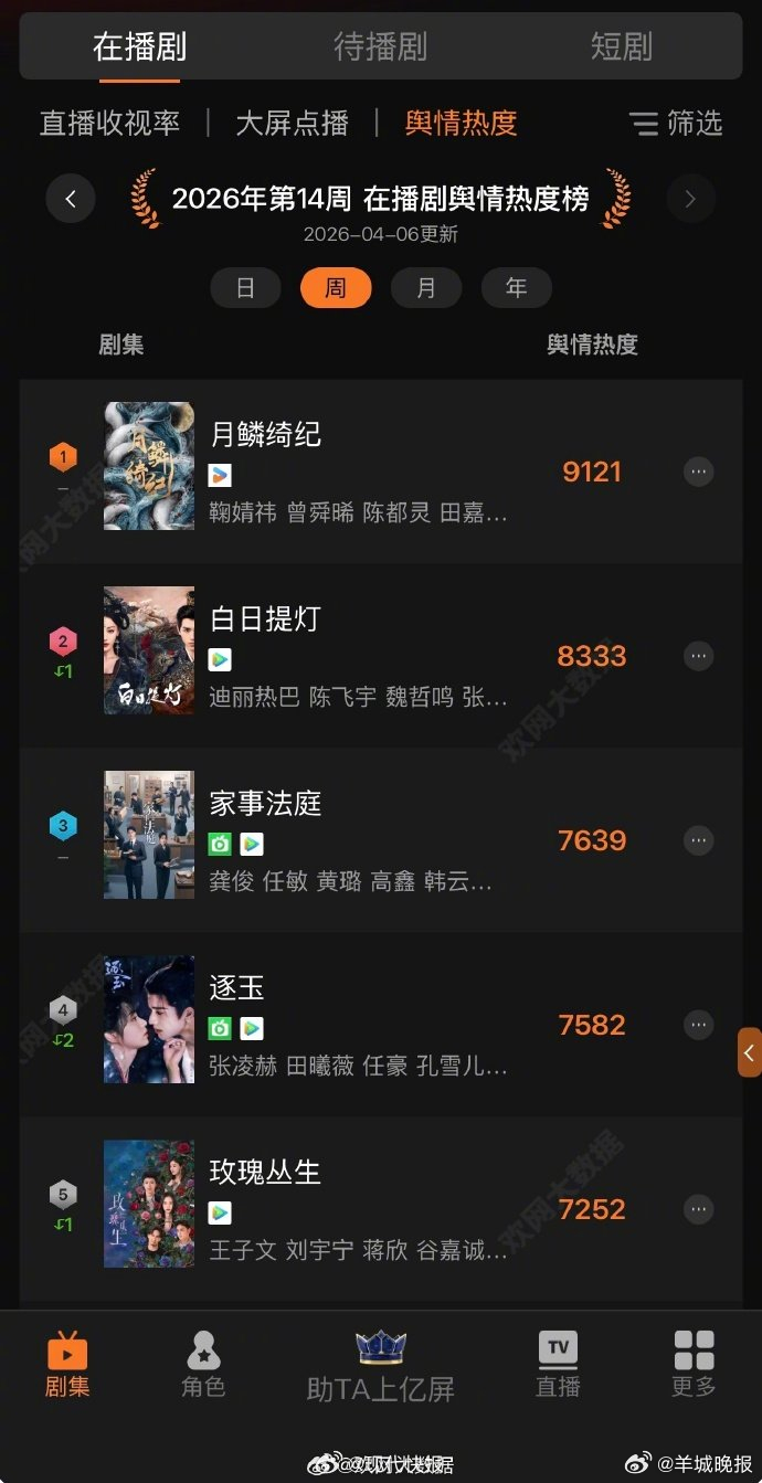 【鞠婧祎月鳞绮纪热度周冠】近日,由 主演的《月鳞绮纪》正在热播。4月7日,据,《月鳞绮纪》开播后以9121的热度断层领先,获得舆情热度周冠!据悉,该剧改编自经典IP《画皮》,饰演的九尾狐露芜衣为寻大妖小唯潜入韦府,与饰演的武拾光、 饰演的雾妄言、饰演的寄灵,一同争夺龙神之力、对抗万妖之首九婴,全员宿命感强烈,奇幻氛围感十足。(现代快报)更多消息:#鞠婧祎 你是不是想陷害姐姐##周杰伦 江语晨##妻子的浪漫旅行嘉宾阵容##江语晨说才刚离婚别这样##金莎孙丞潇上夫妻综艺了##余茵暴瘦#(编辑:杨雨桐;审签:谢杨柳)