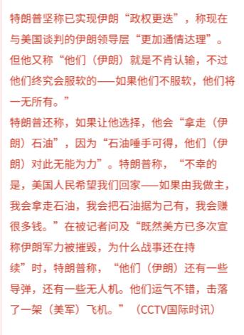 更重要的是,特朗普这番话,本质上就是极限施压,不是真的要发动战争。他在放完狠话后,紧接着就松了口,说伊朗方面已经迈出了重要一步,他认为对方在真诚谈判。