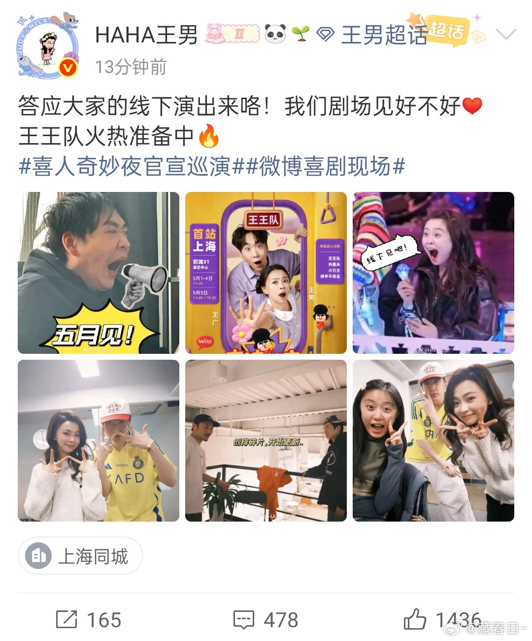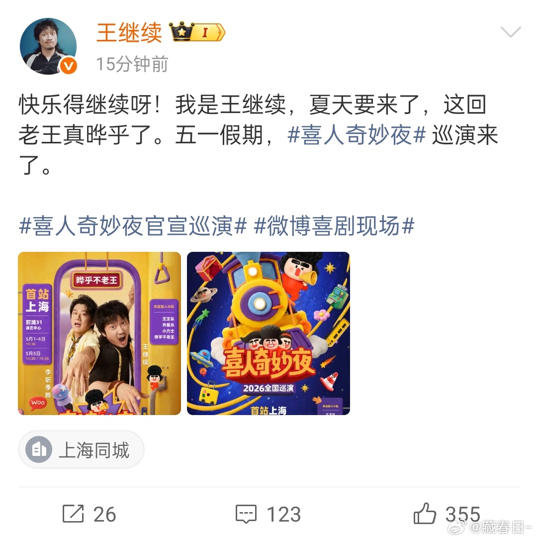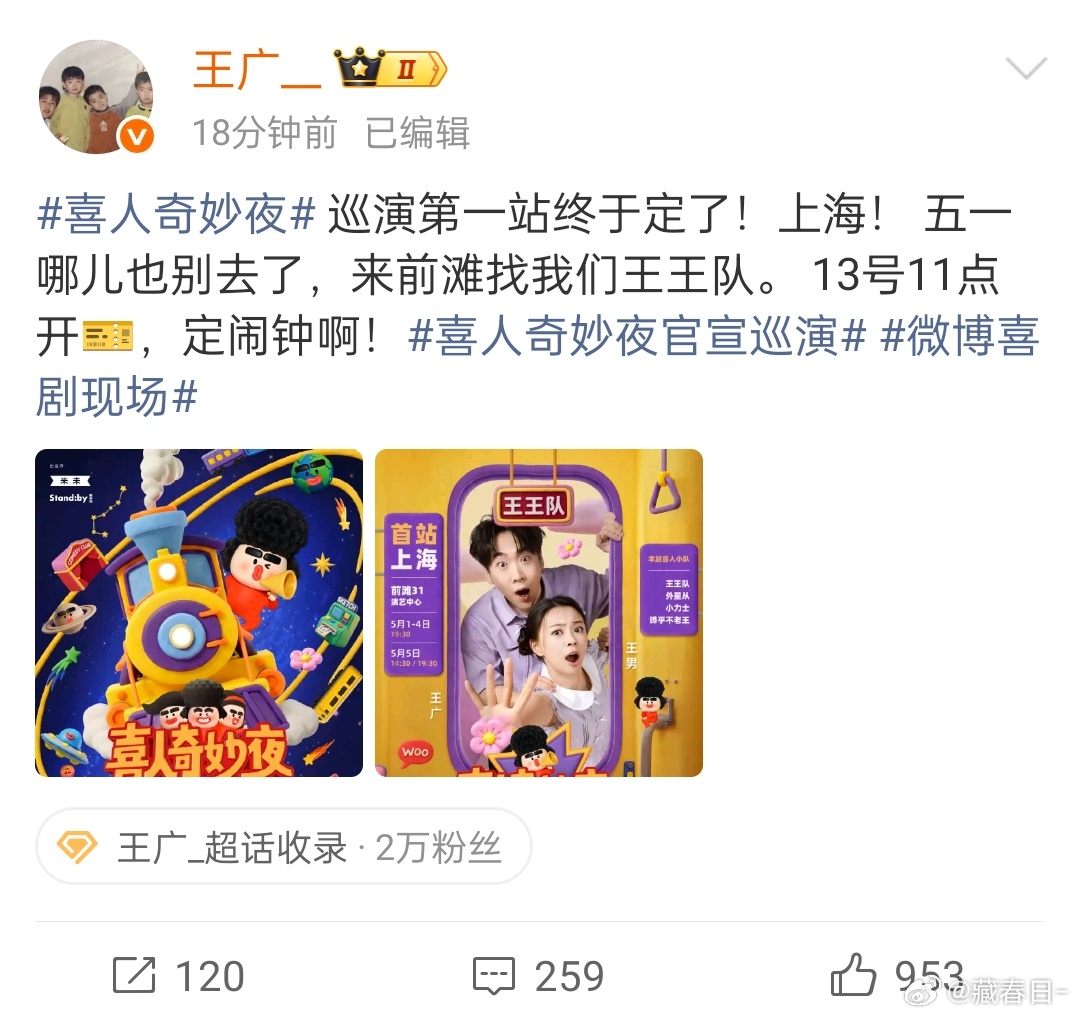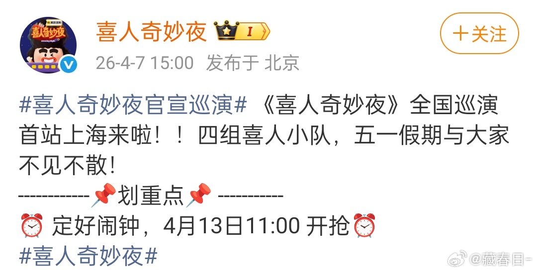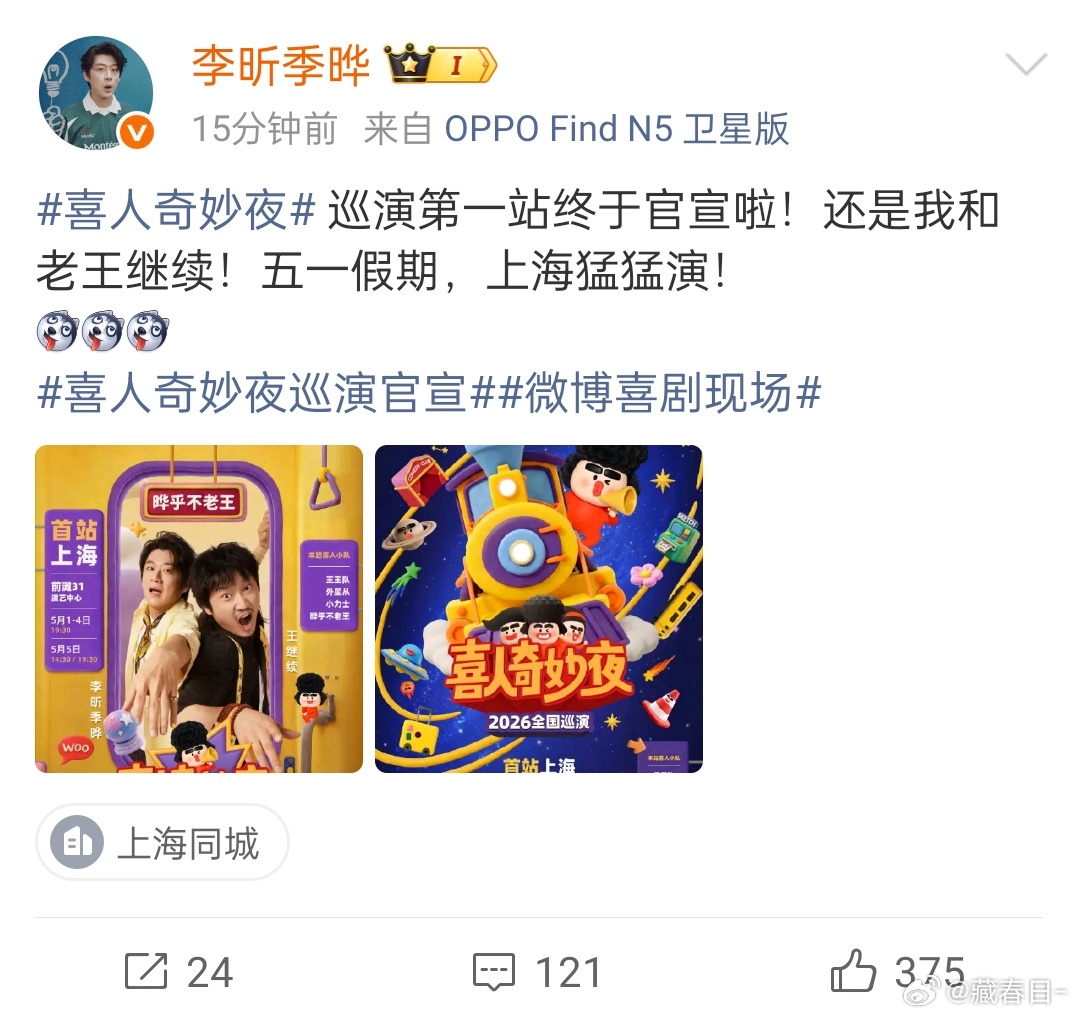 我去喜人奇妙夜巡演上海站官宣了 说来就来