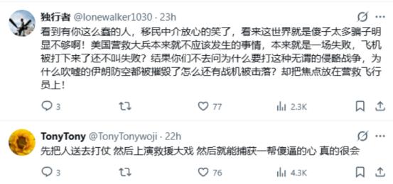 有人直接回他:“你只看到了美军救自己的大兵,没看到美国对待移民的样子吧?”