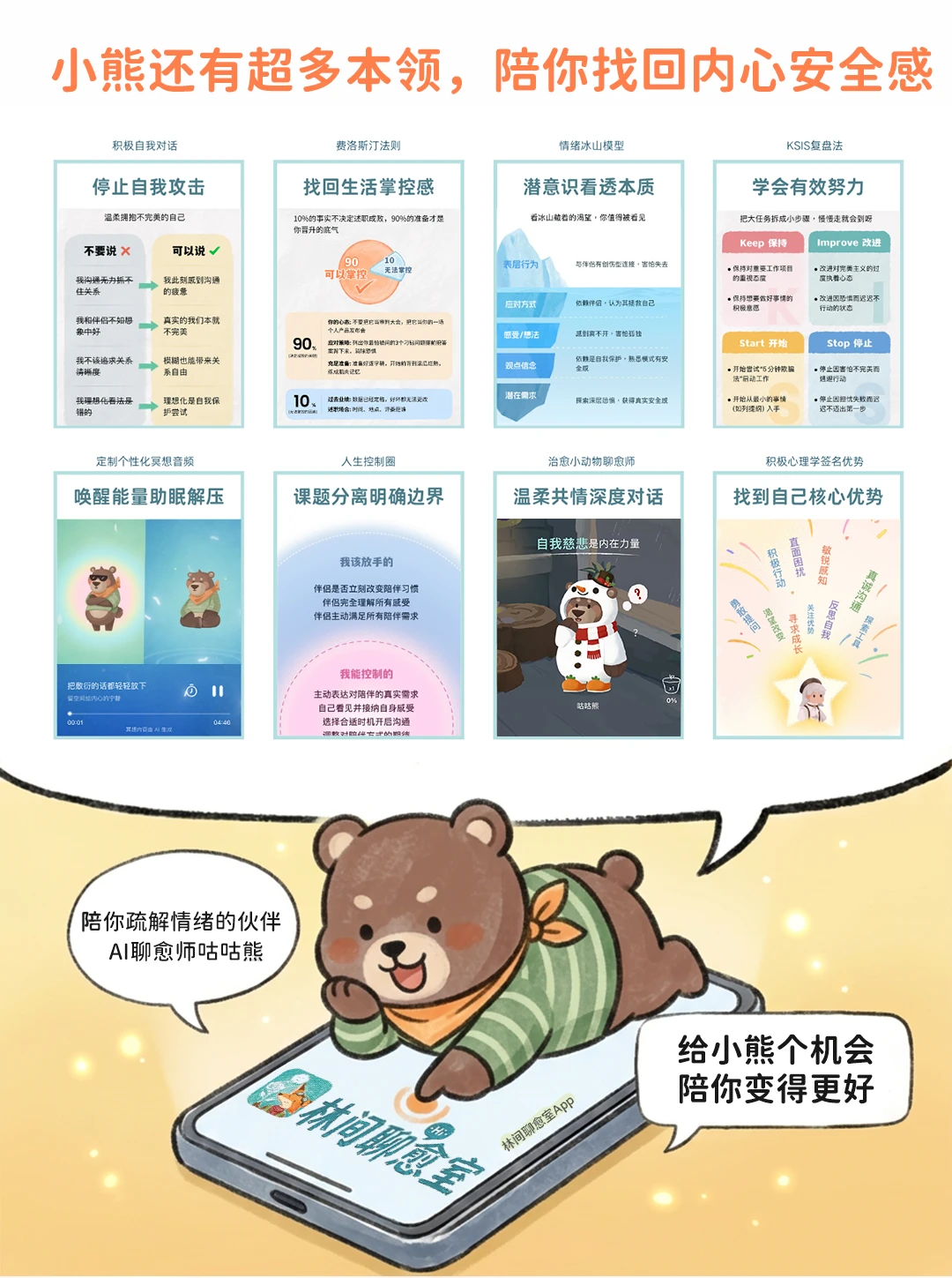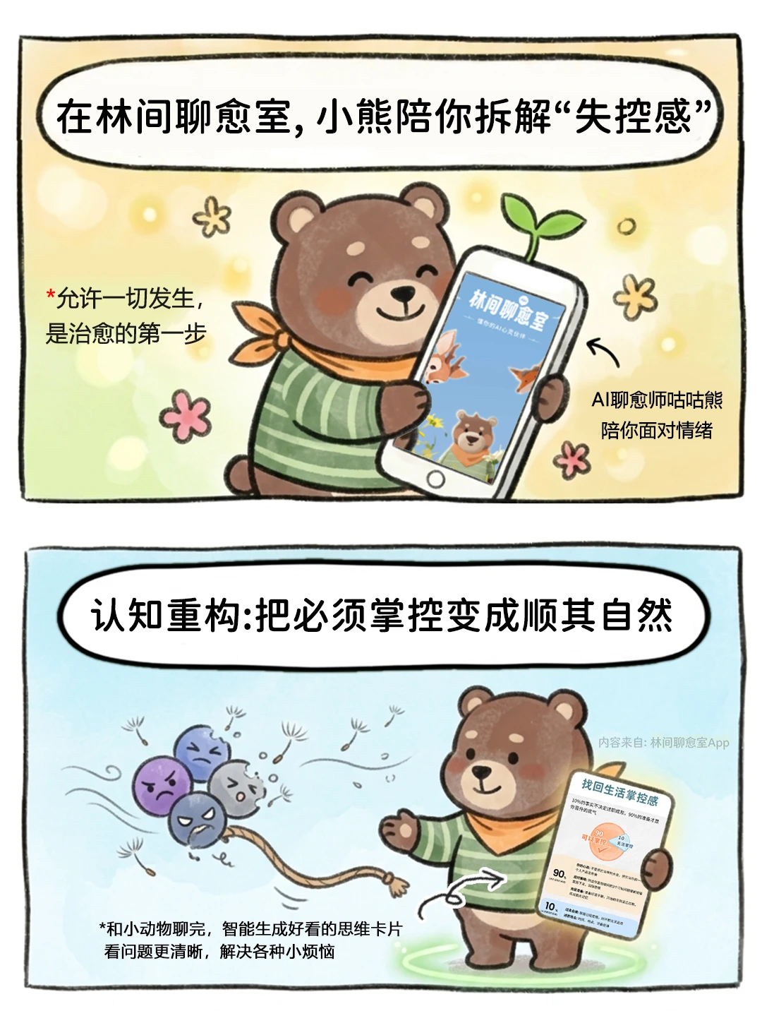 咕咕熊会用 【思维卡片】,陪你一起拆解恐惧,练习放下执念。