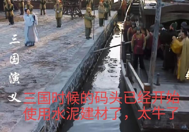 三国演义里面很明显的穿帮镜头。开始我还以为我们中国古代已经很早用上水泥了,一查资