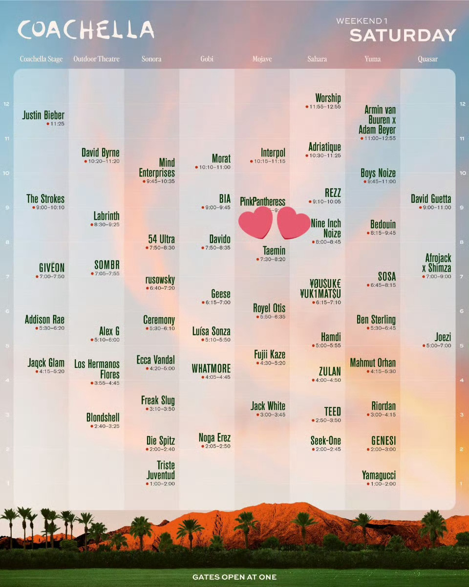 科切拉音乐节2026演出表 科切拉音乐节2026演出时间表、BIGBANG、Lisa、李泰民