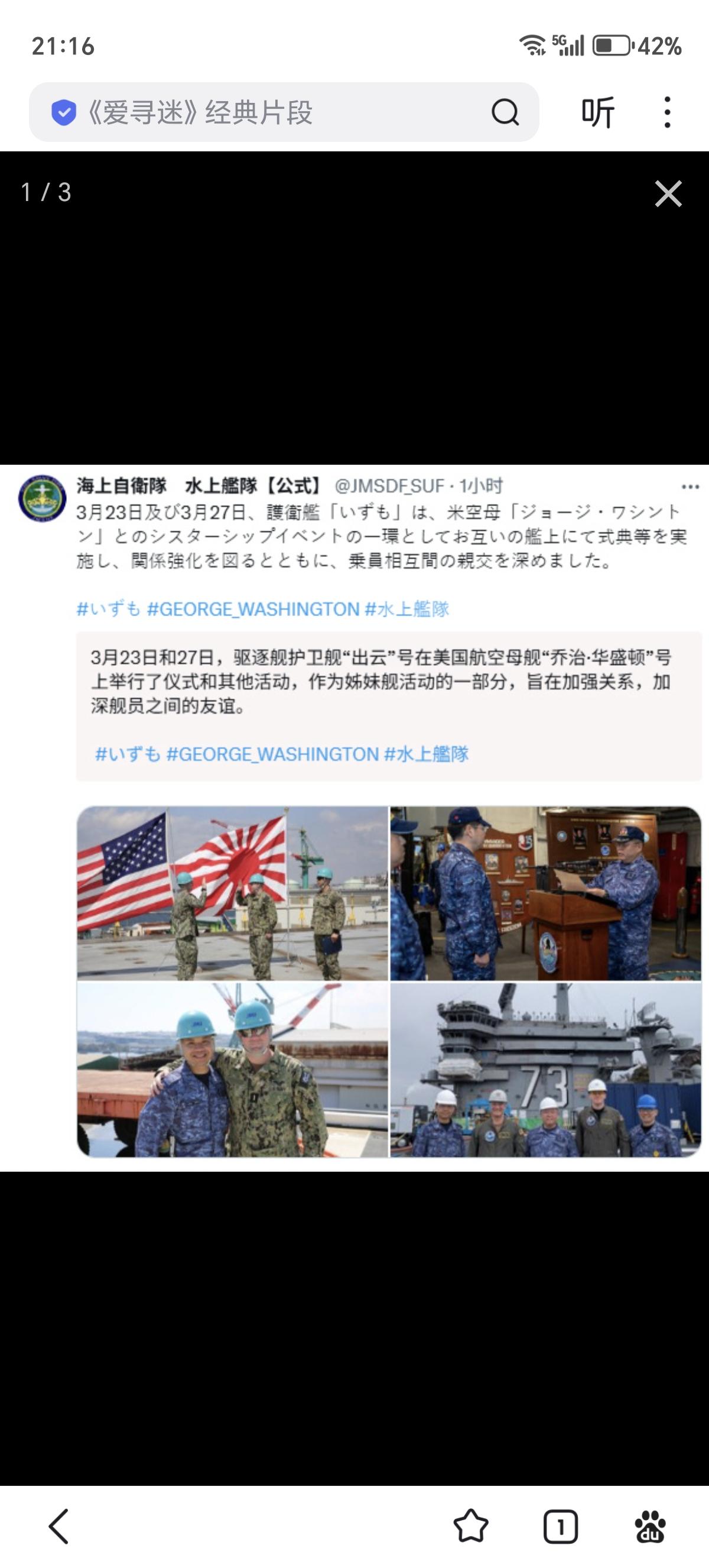 作为姊妹舰,日本海上自卫队的“准航母”“出云”号直升机驱逐舰上的自卫队员在MD一等人“乔治·华盛顿”号核动力航母上举行了仪式和其他活动。近日,一等人核反应堆负责人 连续第三年访问日本横须贺军港,以确保一等人唯一海外核航母母港的安全和有效支持核动力航母运作