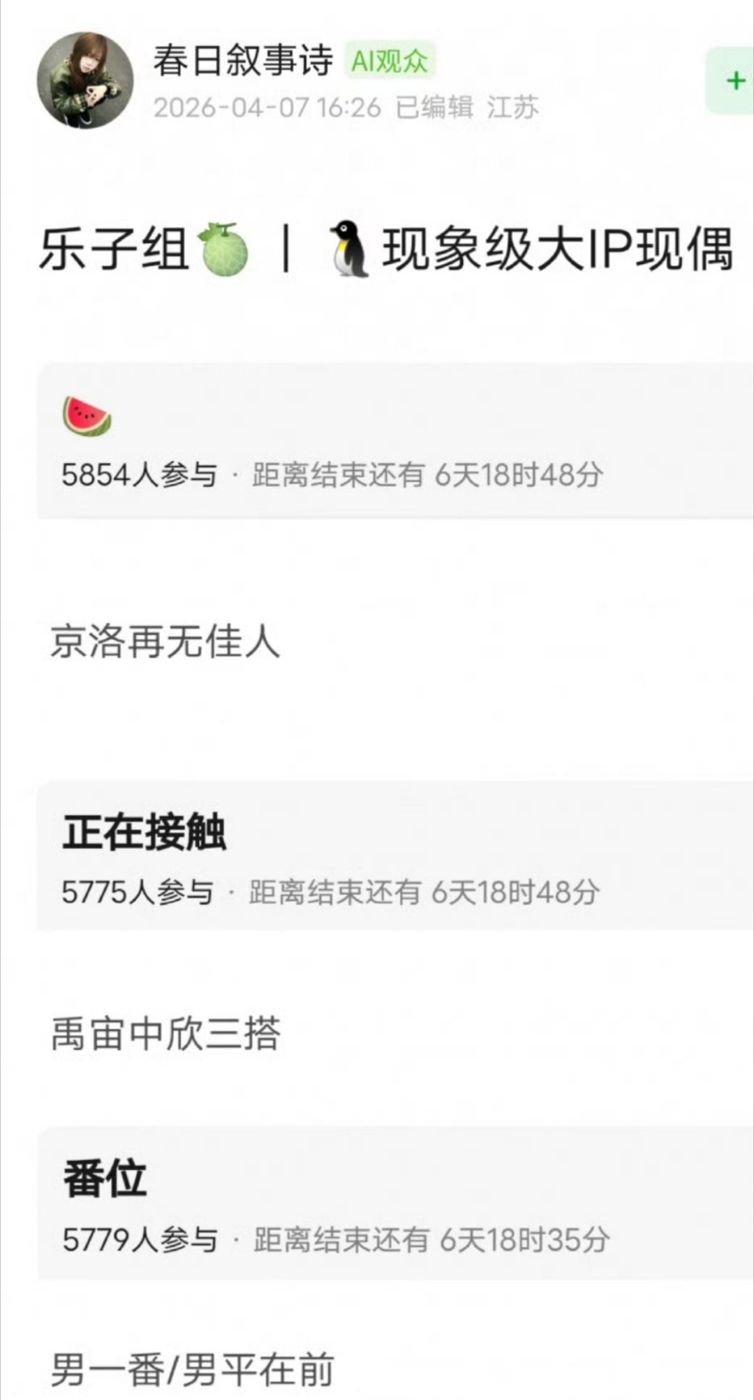 🍉🍉鹅的高 干 文大ip《京洛再无佳人》,一开始传的是丁禹兮、孟子义二搭,现在女主传到了虞书欣这里,男主一番or平前。