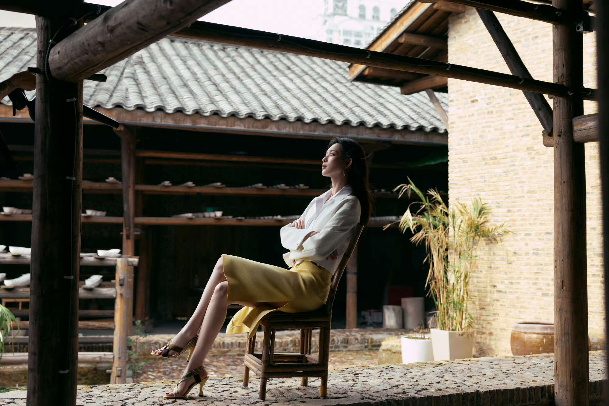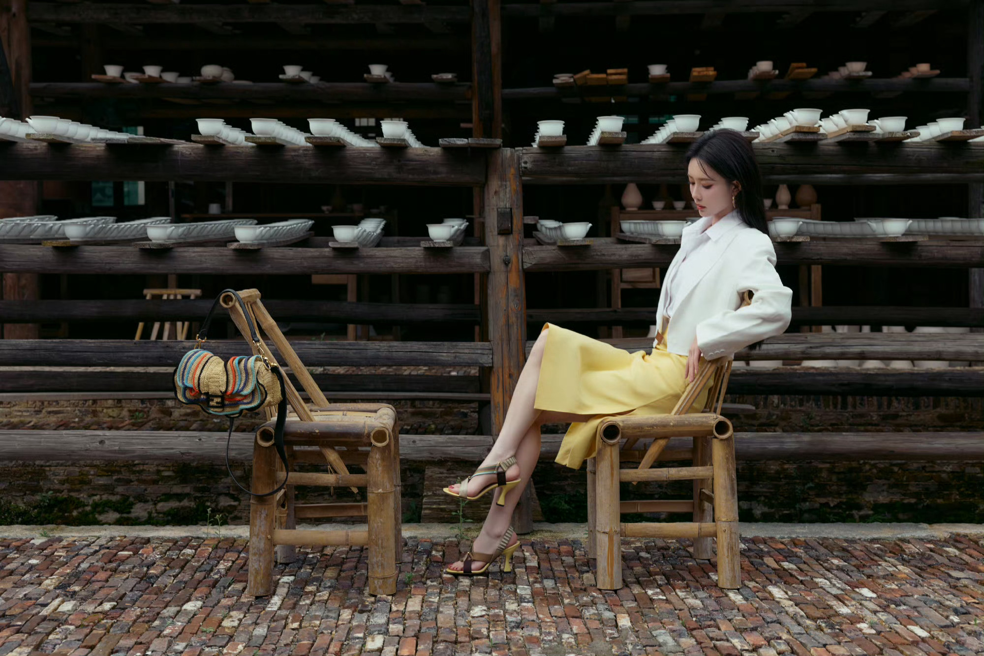 孟子义 in FENDI 🤍💛🤍 今日景德镇活动造型,白西装配黄裙,简约优