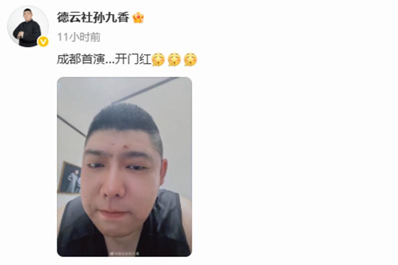 孙九香晒受伤照,成都首演挂彩,观众透露磕桌子上了!德云社孙九香深夜发文,晒出了一张额头受伤的照片。文案中,孙九香用轻松愉快的方式告诉大家,来成都首演,取得了开门红。于是,孙九香如何取得这个开门红,就成了多数人的好奇。有的猜测是撞在某个地方了,有的询问是不是赵芸一的杰作,有的叮嘱要小心,有的调侃再不去医院就自己好了。从众多的评论留言不难看出,孙九香在粉丝、网友这里还是蛮受欢迎的。既然大家有关注,自然就有人会揭秘。就有观众透露,孙九香是在演出的时候,不小心把头磕桌子上了。