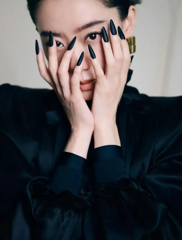 张小斐身穿黑色衬衫+皮裙,简直又酷又飒
