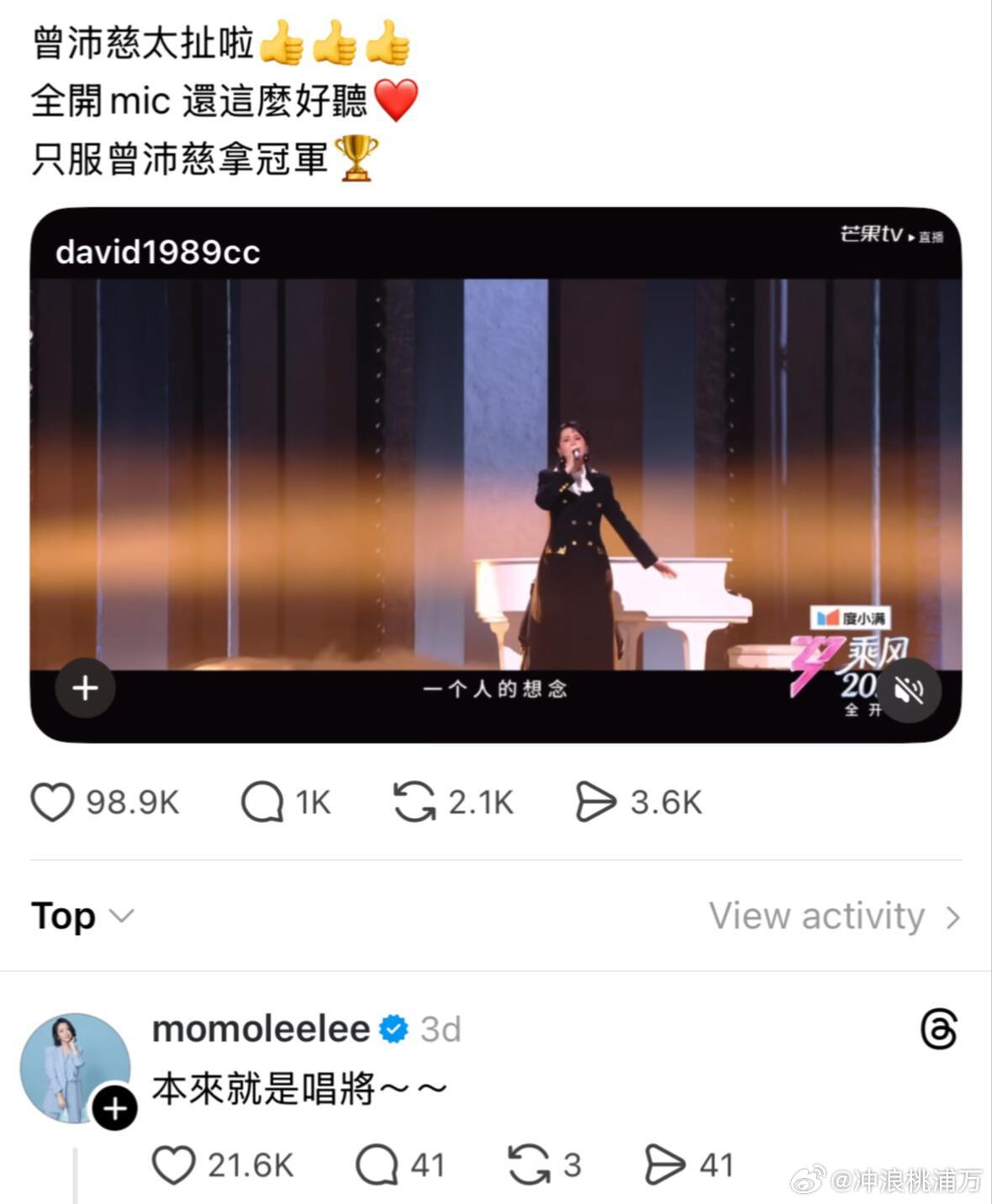 陶晶莹说曾沛慈本来就是唱将陶晶莹评论曾沛慈乘风初舞台陶晶莹评论曾沛慈乘风初舞台:本来就是唱将!陶子姐也有关注!小胖老师都已经不在了,当年你还没有专辑时他说一直等你的那张 现在都第五张了…