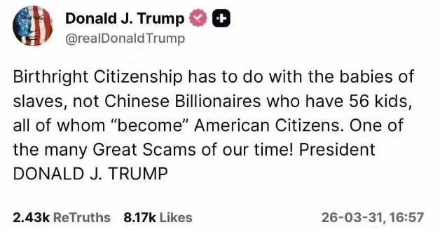 特朗普近期公开喊话,直指美国不是中国富豪繁殖后代的幼儿园,更特别点出有位中国富豪生了56个孩子,且全部成功入籍美国。这番言论一出,也让外界把目光聚焦到美国出生公民权的制度漏洞与部分富豪跨国生育的灰色操作上。