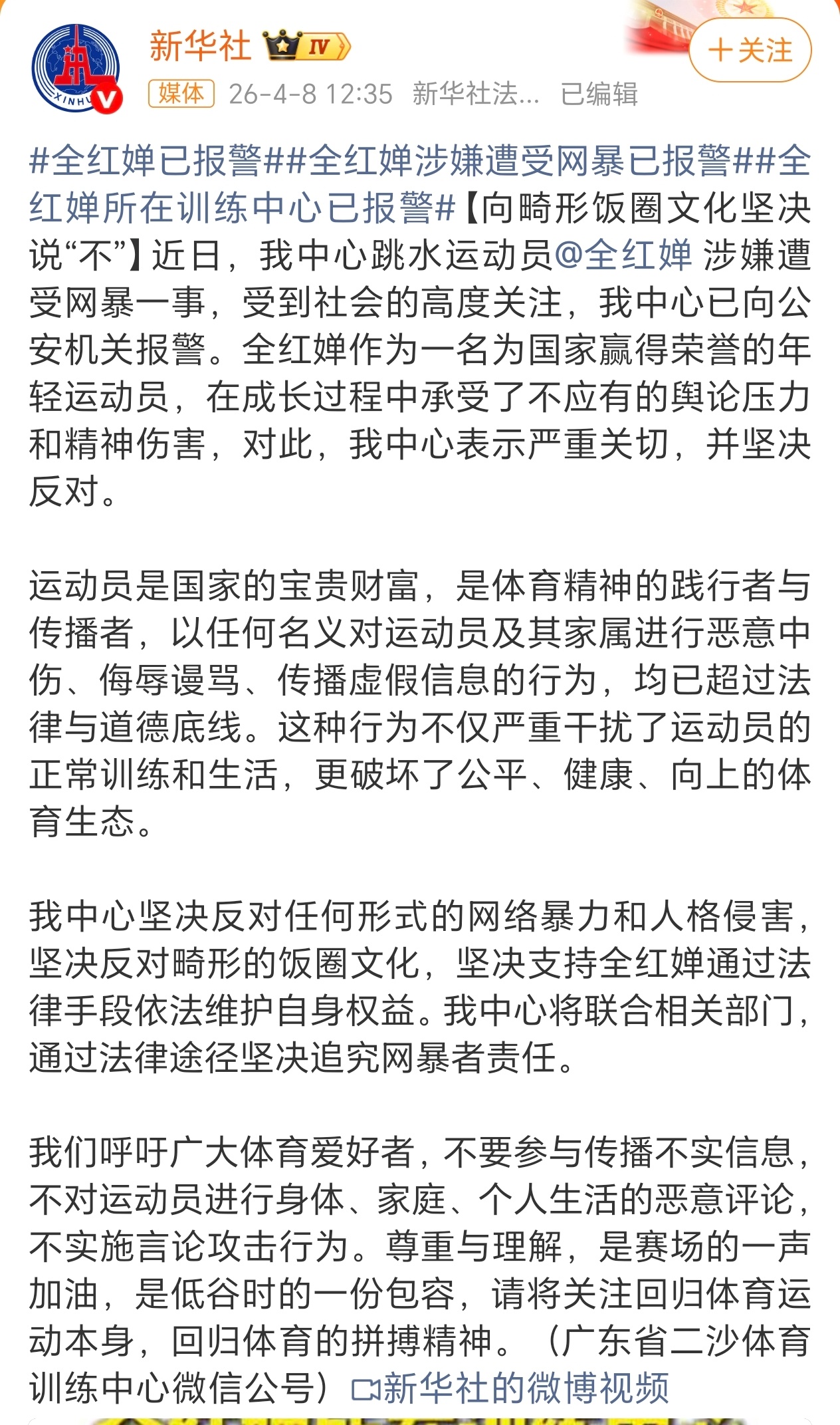 全红婵报警这事儿,我专门问了搞体育的朋友——群里人全退了,账号也注销了,还能有结