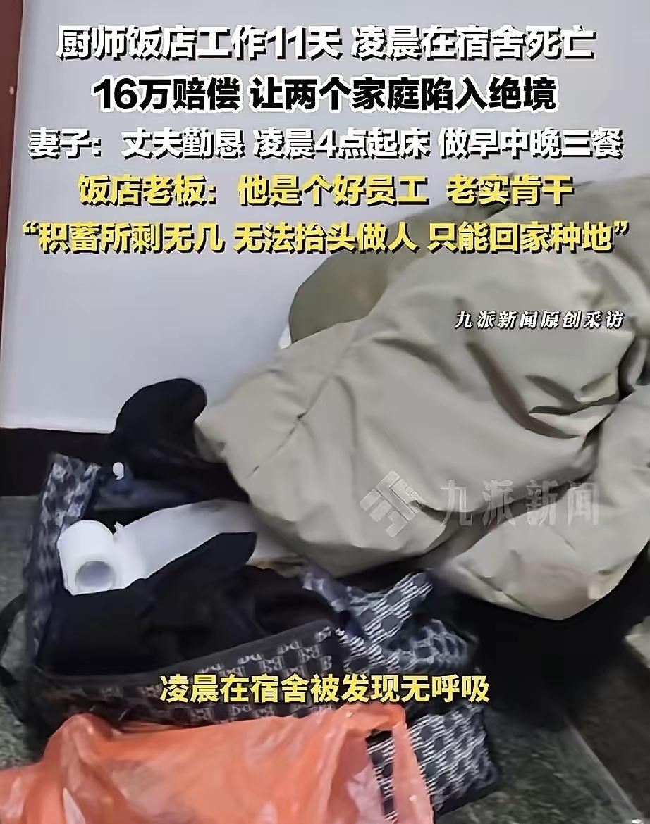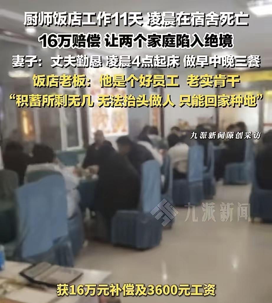 山西一厨师上班11天在店内死亡,家属索赔160万,饭店老板最终一次性赔了16万。